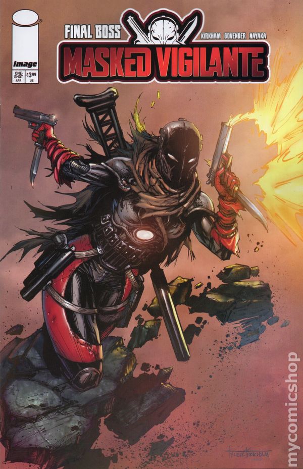 Limited 1 for 25 Retailer Incentive Variant Cover. (W) Tyler Kirkham (A) Leon Govender (CA) Tyler Kirkham From the explosive world of Final Boss emerges its most enigmatic breakout star: the Masked Vigilante. She is the fan-favorite, shadowed assassin shrouded in absolute mystery—until now. We dive deep into her origins, uncovering the history of this lethal protector. Melding with the darkness, she unleashes an arsenal of dangerously crafted weaponry to dismantle a ruthless crime syndicate. 24 pages, full color, rated mature. Cover price $3.99.