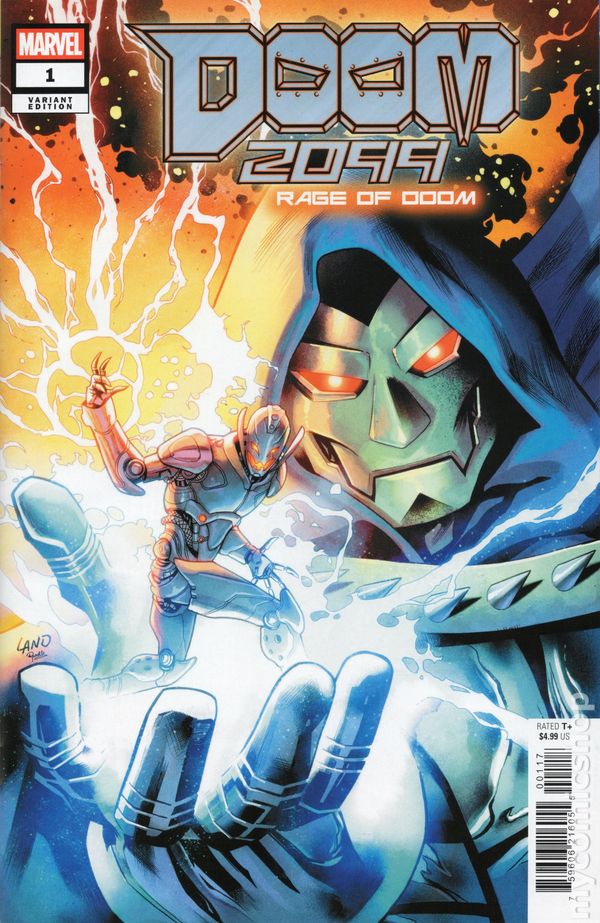 Limited 1 for 25 Retailer Incentive Variant Cover. (W) Frank Tieri (A) Von Randal (CA) Greg Land ULTRON VS. DOOM! DOCTOR DOOM'S spell didn't just annihilate his enemies - it wiped out all life on Earth, leaving even him to regret the cost. In the desolate future of DOOMED 2099, Doom discovers ULTRON'S buried head and risks everything to repair his time machine. But awakening a dangerously powerful machine intelligence invites new rebellion, and the path to redemption may demand a price even Doom never anticipated. Cover price $4.99.