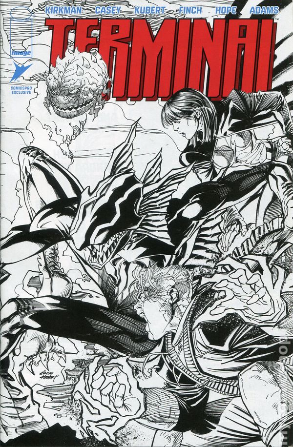 ComicsPro Exclusive Variant Cover by Andy Kubert. (W) Robert Kirkman, Joe Casey (A) Andy Kubert, David Finch & Sandra Hope, Arthur Adams. 16 page B&W, unlettered preview featuring art from issues 1, 7, and 10.