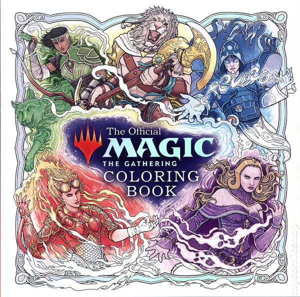 1st printing. Bring your favorite artwork from Magic: The Gathering to vivid life in this official 80-page coloring book for fans of all ages. Illuminate every color of mana through artwork that showcases classic characters, settings, creatures, and scenes from the adventure-filled worlds of Magic, from Dominaria to Ravnica to Strixhaven and beyond. Featuring 80 pages of iconic and fan-favorite illustrations from across Magics three-decade history, printed on high-quality, bleed-resistant paper, The Official Magic: The Gathering Coloring Book is the perfect gift for any player looking for an enjoyable way to unwind and relax after a long day of spell-slinging. Softcover, 10-in. x 10-in., 80 pages, B&W. Cover price $17.99.