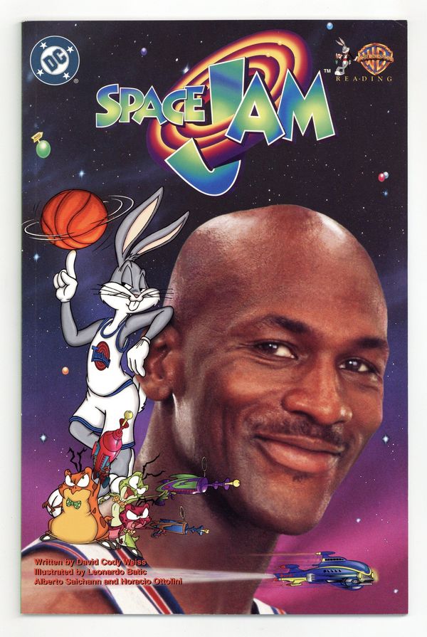Starts May 25 Direct Edition. Written by David Cody Weiss. Art by Leonardo Batic, Alberto Saichann and Horacio Ottolini. As excitement builds toward Warner Bros.' live action/animated adventure Space Jam starring NBA superstar Michael Jordan and the Looney Tunes, DC offers the film's official comic book adaptation. When dastardly aliens try to kidnap the Looney Tunes to spruce up their otherworldly amusement park, Michael Jordan gets pulled right into the middle of the mayhem! Only he can turn the Looney Tunes into a cohesive basketball team capable of beating the unscrupulous and unsportsmanlike Nerdlucks! FC, 50 pg. Prestige Format. Cover price $5.95.