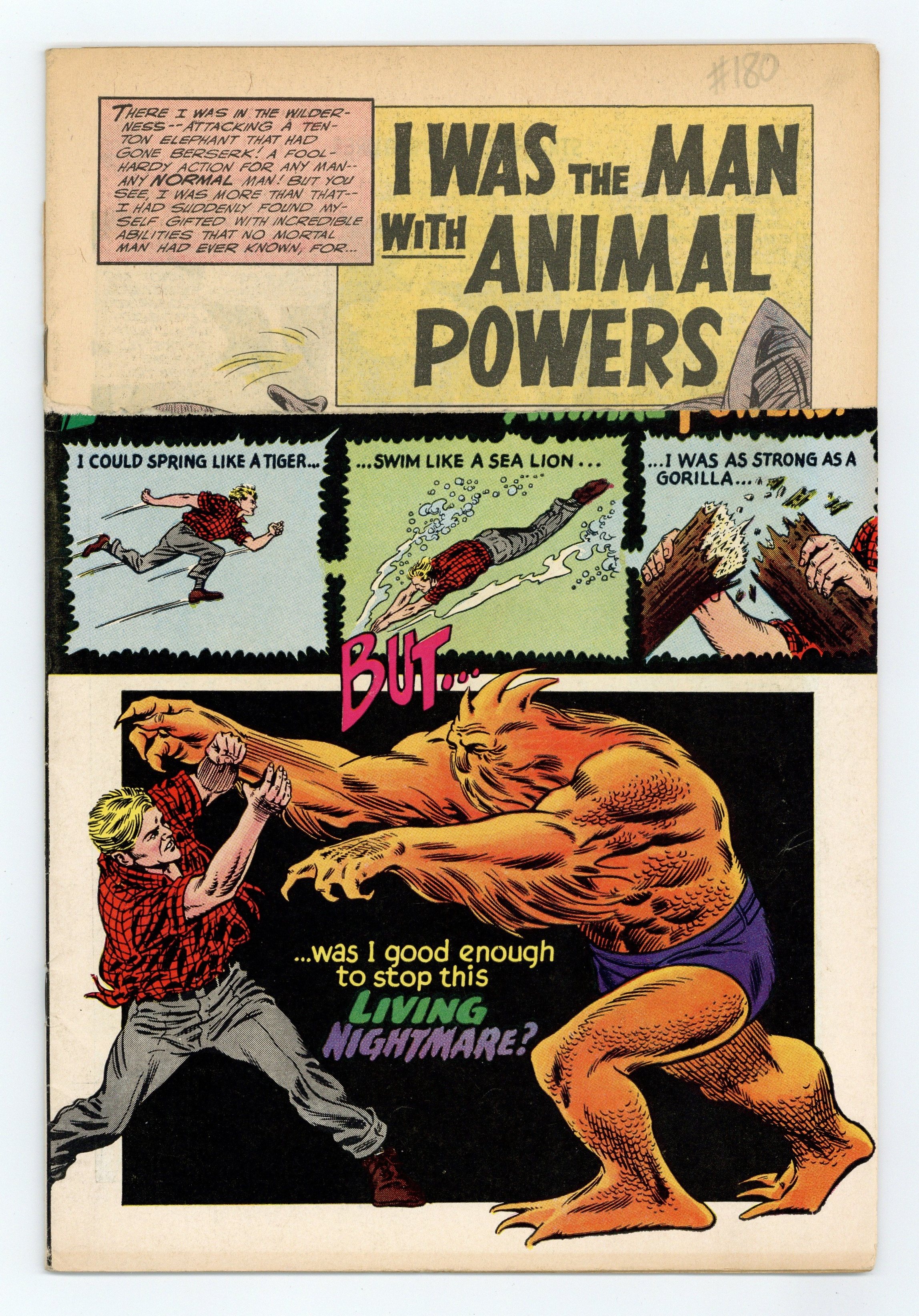 Starts May 25 1st appearance and origin of Animal Man in "I Was the Man With Animal Powers" (pencils by Carmine Infantino); and "One Monster, Coming Up." Infantino/Murphy Anderson cover.Carmine Infantino cover. Carmine Infantino & George Roussos art. 36 Pages, Full Color. Cover price $0.12.
