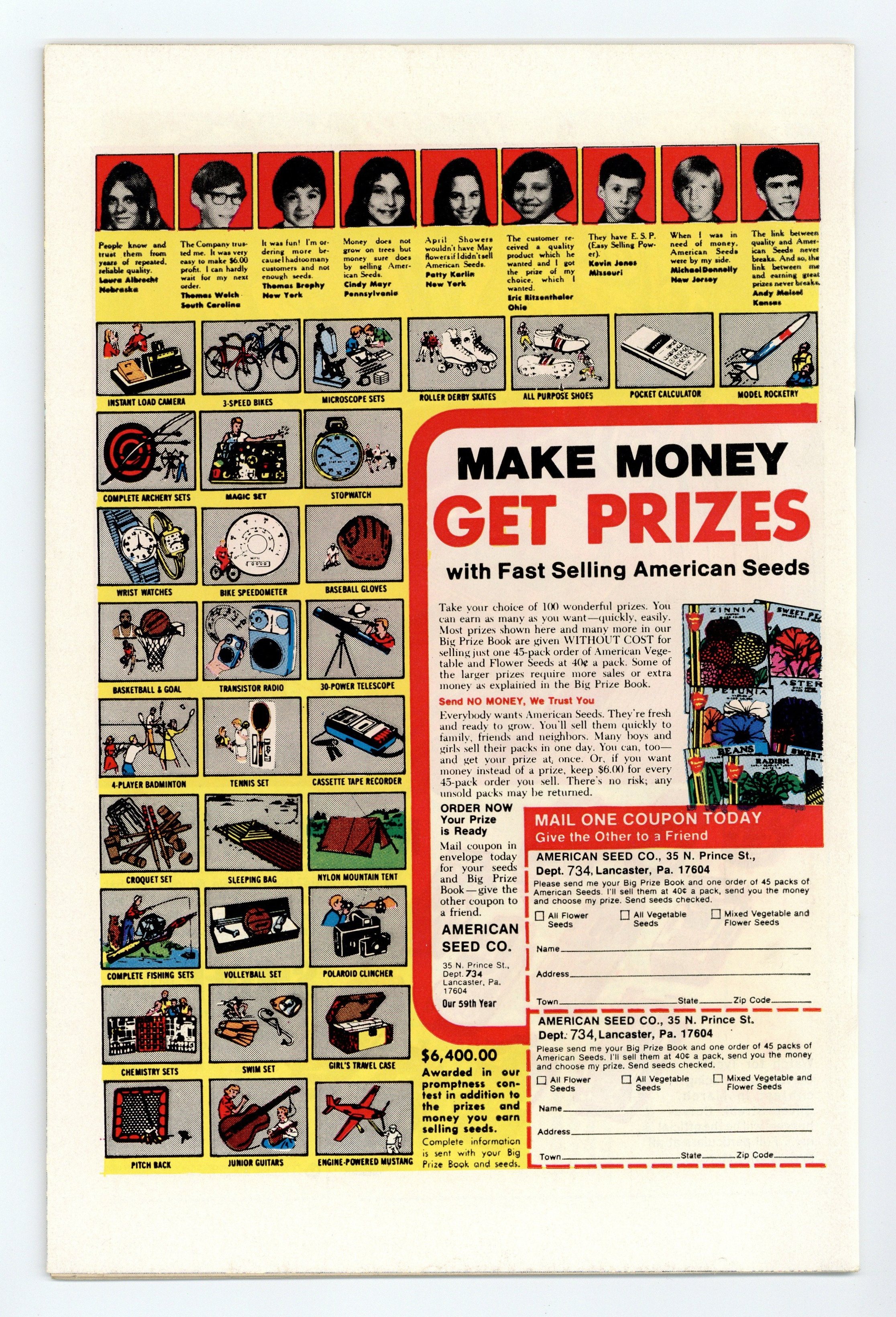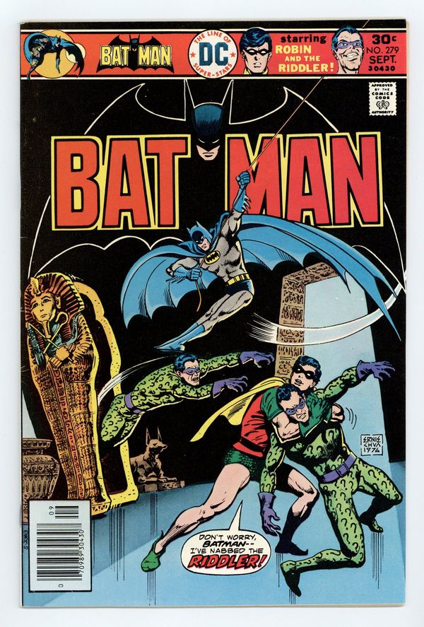 Starts May 25 Cover art by Ernie Chan (as Ernie Chua). "Riddler on the Rampage," script by David Vern (as David V. Reed), pencils by Ernie Chan (as Ernie Chua), inks by Tex Blaisdell; Riddler escapes from prison; He sends two doubles to fight Batman and Robin in a clock museum, then fights them himself at the Fair Harbor Yacht Club and the Gotham Museum of Art. Justice for All Includes Children public service announcement, pencils by Neal Adams, inks by Vince Colletta; Superman saves a hitchhiking boy from arrest and councils him on the dangers of hitchhiking. 36 Pages, Full Color. Cover price $0.30.