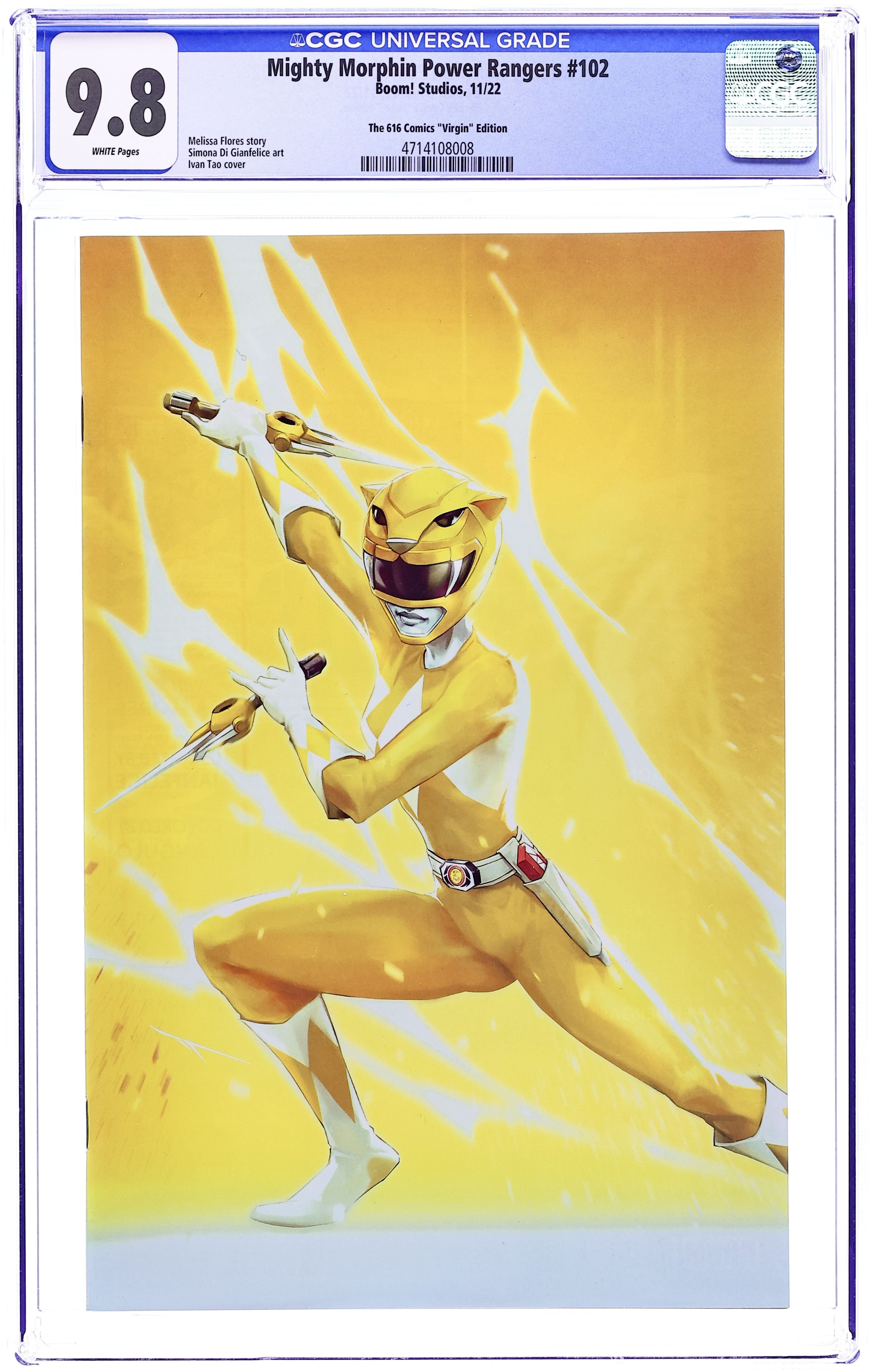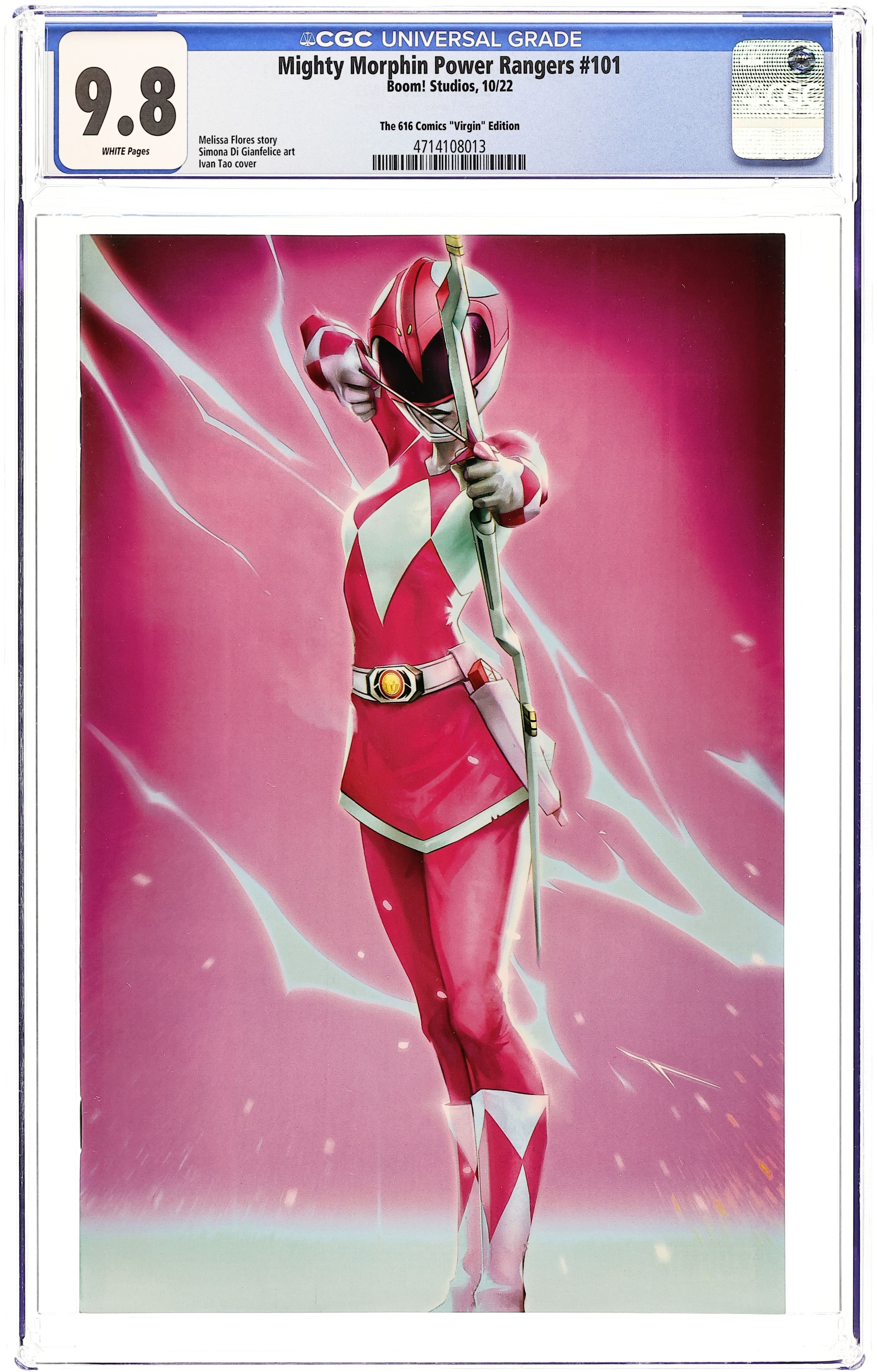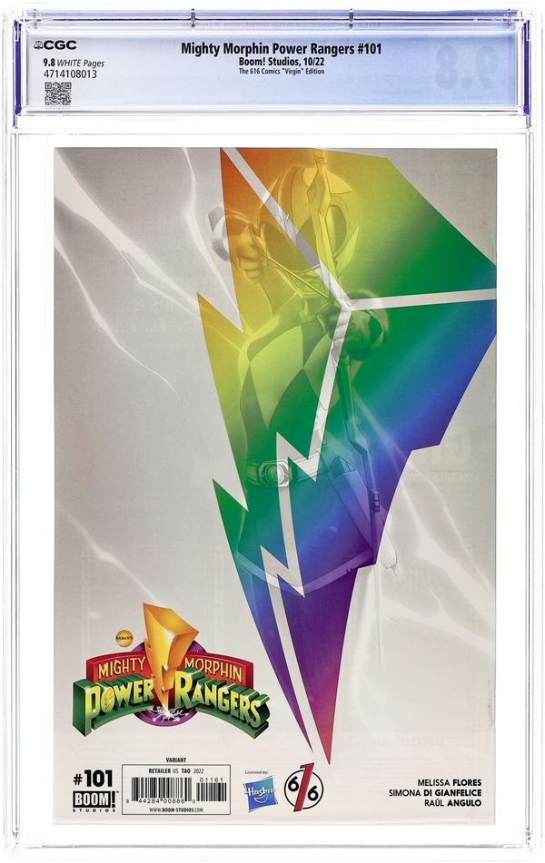 The 616 Comics Exclusive Virgin Cover by Ivan Tao. Written by Melissa Flores. Art by Simona Di Gianfelice. The CHARGE TO 100 brought everything together in Mighty Morphin Power Rangers #100, now discover the bold new future for the bestselling franchise! Writer Melissa Flores (Power Rangers, The Dead Lucky) and artist Simona Di Gianfelice (All-New Firefly) reunite all of your favorite Rangers, recharged and ready for a bold new direction for your favorite Teenagers With Attitude that begins right here!