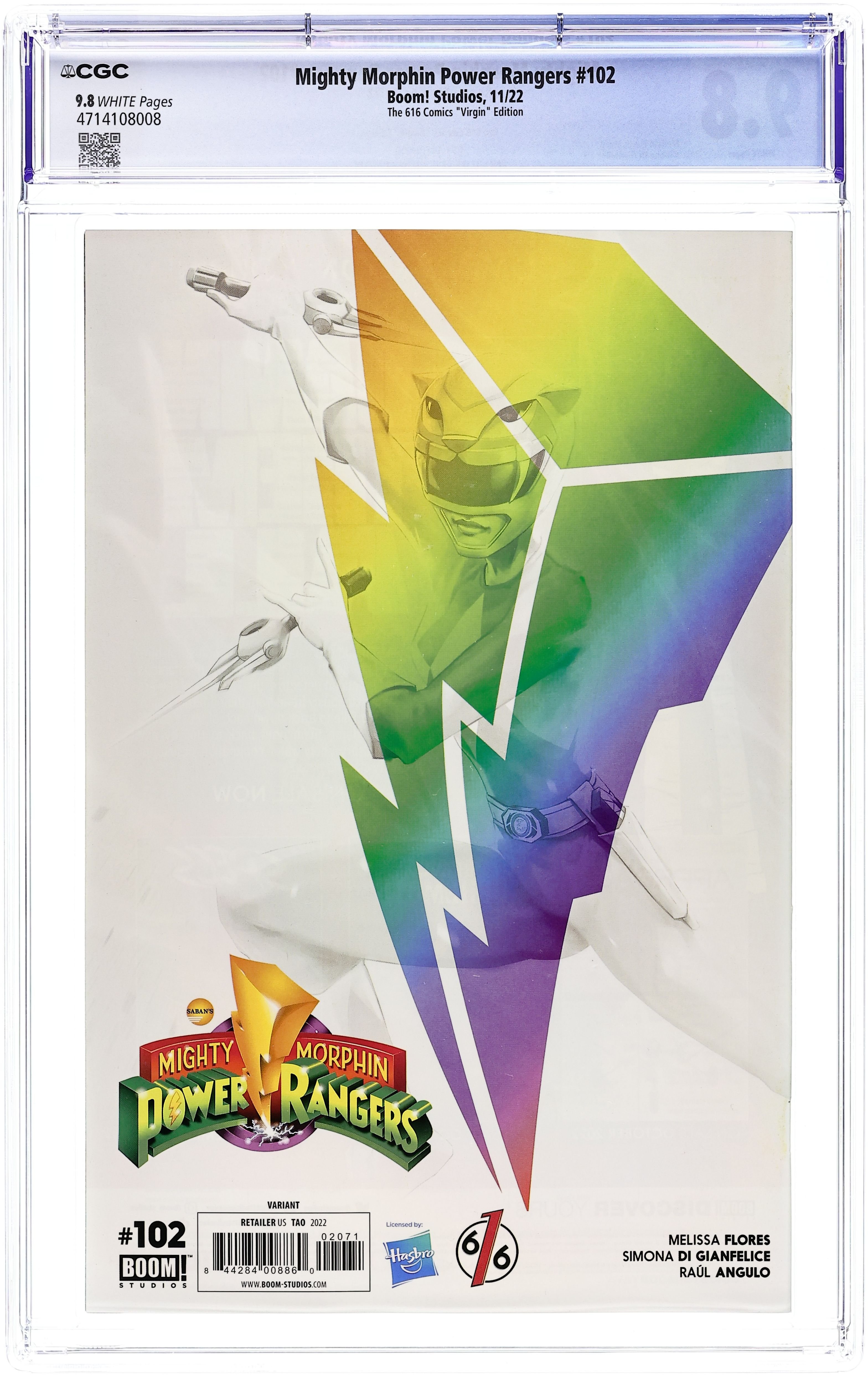 WhatNot and StashhhLoot Exclusive "Battle Damage" Virgin Cover by Tyler Kirkham. Written by Melissa Flores. Art by Simona Di Gianfelice. The CHARGE TO 100 brought everything together in Mighty Morphin Power Rangers #100, now discover the bold new future for the bestselling franchise! Writer Melissa Flores (Power Rangers, The Dead Lucky) and artist Simona Di Gianfelice (All-New Firefly) reunite all of your favorite Rangers, recharged and ready for a bold new direction for your favorite Teenagers With Attitude that begins right here!
