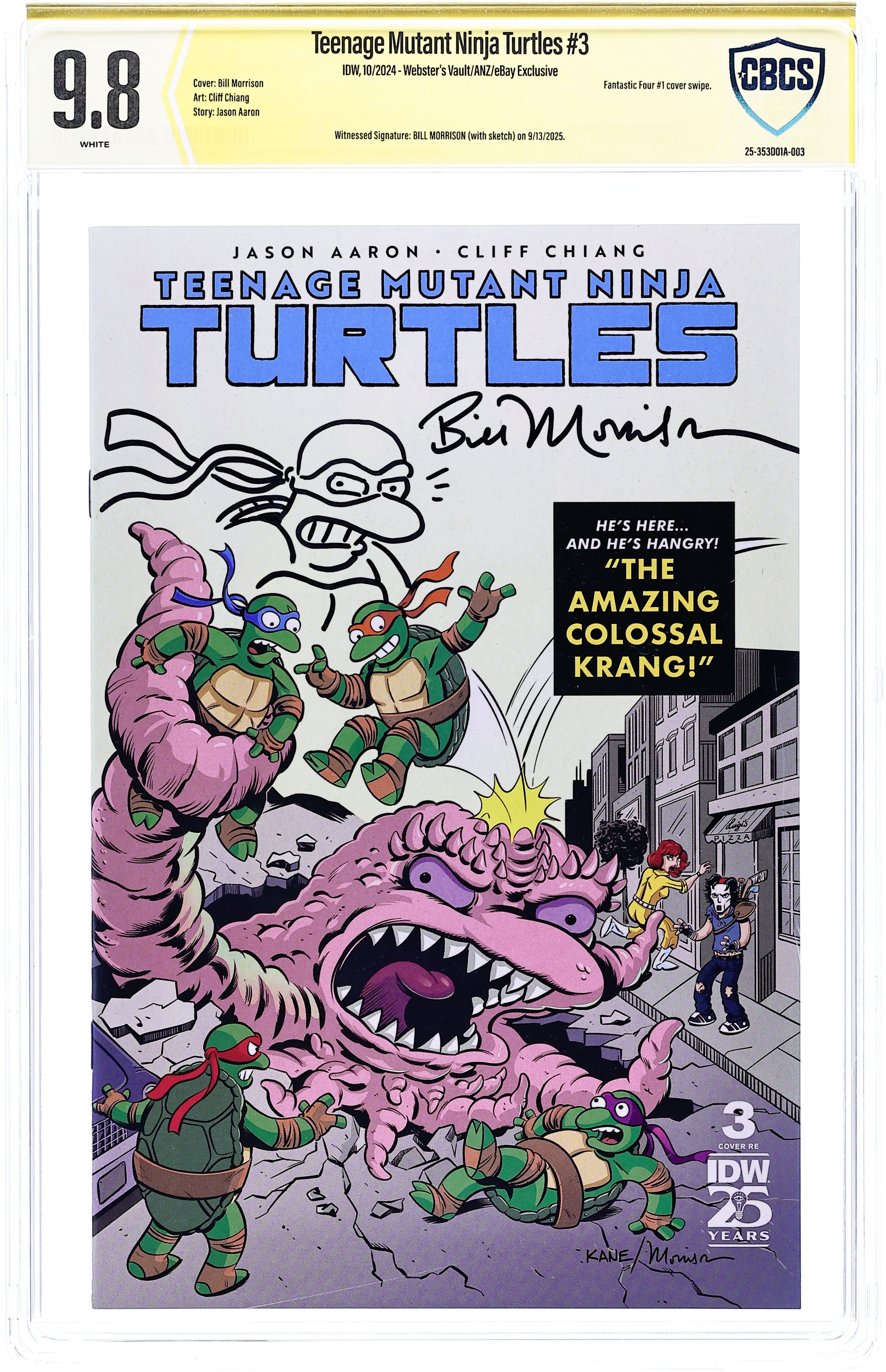 Published Oct 2024 by IDW Publishing.Teenage Mutant Ninja Turtles (2024 IDW) 3WEBSTER.A CBCS 9.8 Witnessed Sig Morrison
