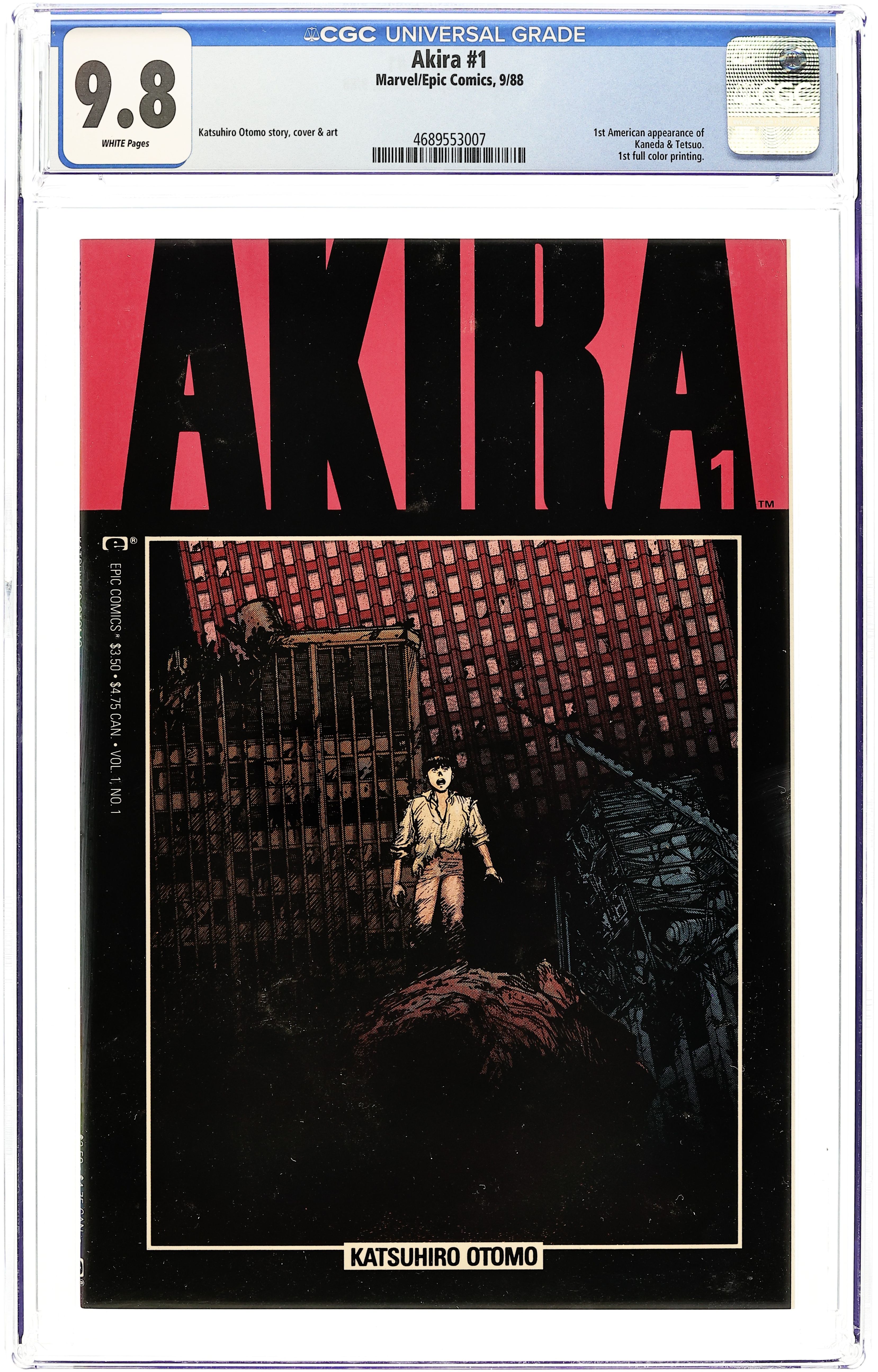 1st printing. Here it is – the first English translation of Katsuhiro Otomo's influential manga series, paving the way for the manga and anime craze to blossom in the English-speaking world. Decades after a mysterious explosion destroys Tokyo, teen bikers Tetsuo and Kaneda encounter a child with the face of an old man; his strange powers hold the key to the mystery. Story, art and cover by Otomo. Color by Steve Oliff, who pioneered the use of computer coloring with this series. Also includes an introductory article by Archie Goodwin. Mature readers. Cover price $3.50.