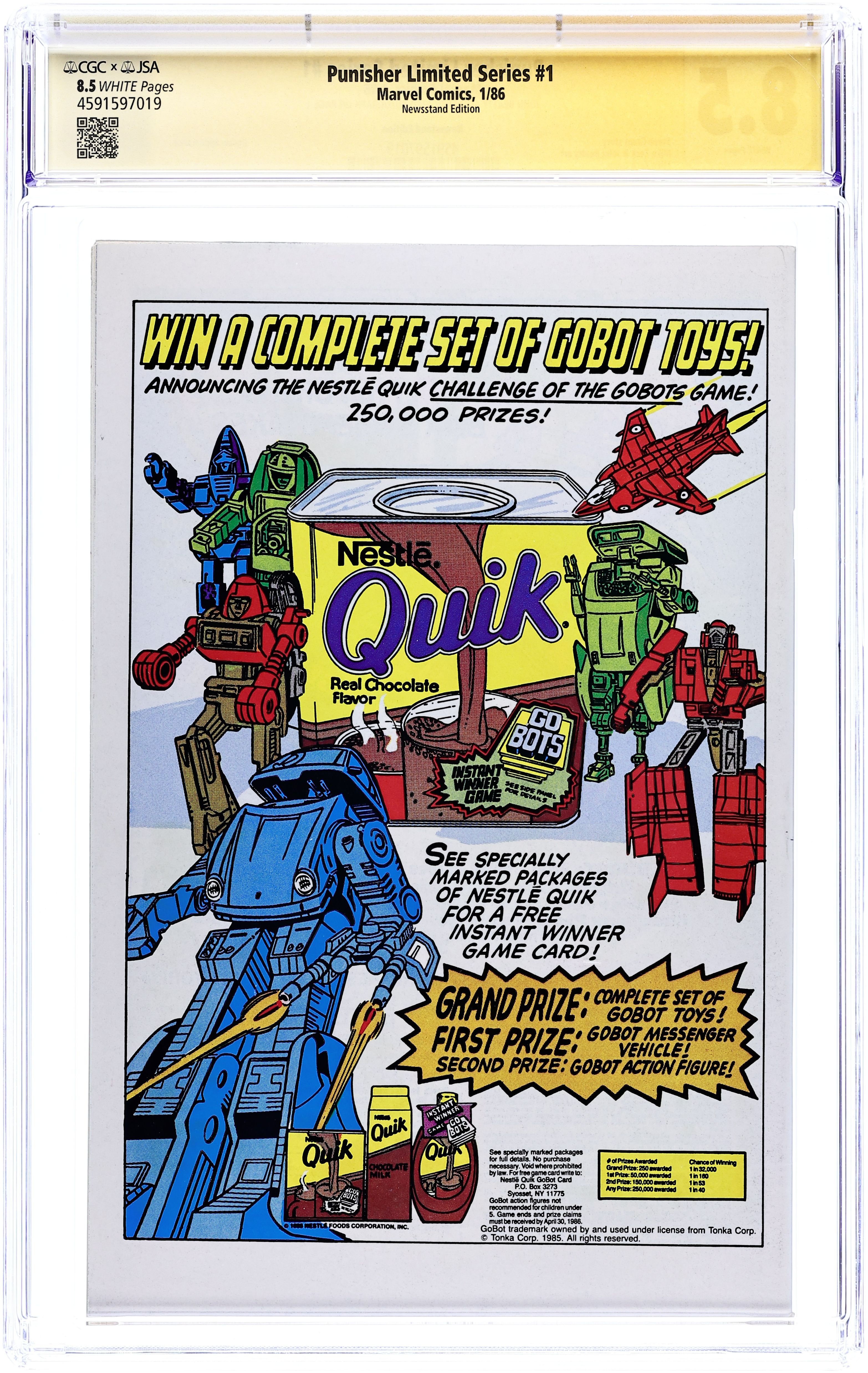 Newsstand Edition. "Circle of Blood!" Story by Steven Grant. Art by Mike Zeck and John Beatty. Cover by Mike Zeck and Phil Zemelman. After a drug-induced bloody rampage, Frank Castle finds himself behind bars. When he discovers his old enemy Jigsaw, a criminal with a severely scarred face, is responsible, the Punisher sets out to do what he does best. Cover price $1.25.