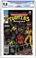 Newsstand Edition. "The Early Years: How the Pre-TMNTs Got Their Colors" - Written by Dean Clarrain, Steve Sullivan and Brian Thomas. Art by Chris Allan, Brian Thomas and Dean Rohrer. Cover by Chris Allan and Ryan Brown. Splinter spins this tale of the pre-teen Turtles, in which we learn how the four green dudes received their respective colors/bandanas! 32 pages, full color. Cover price $1.25.