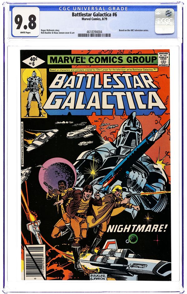 "Shuttle-Diplomacy!" Written by Bill Mantlo. Art by Sal Buscema and Klaus Janson. After Apollo, Cassiopea and Colonel Tigh prevented the assassination of Commander Adama, Adama decides to reflect on his past. Cover price $0.40.