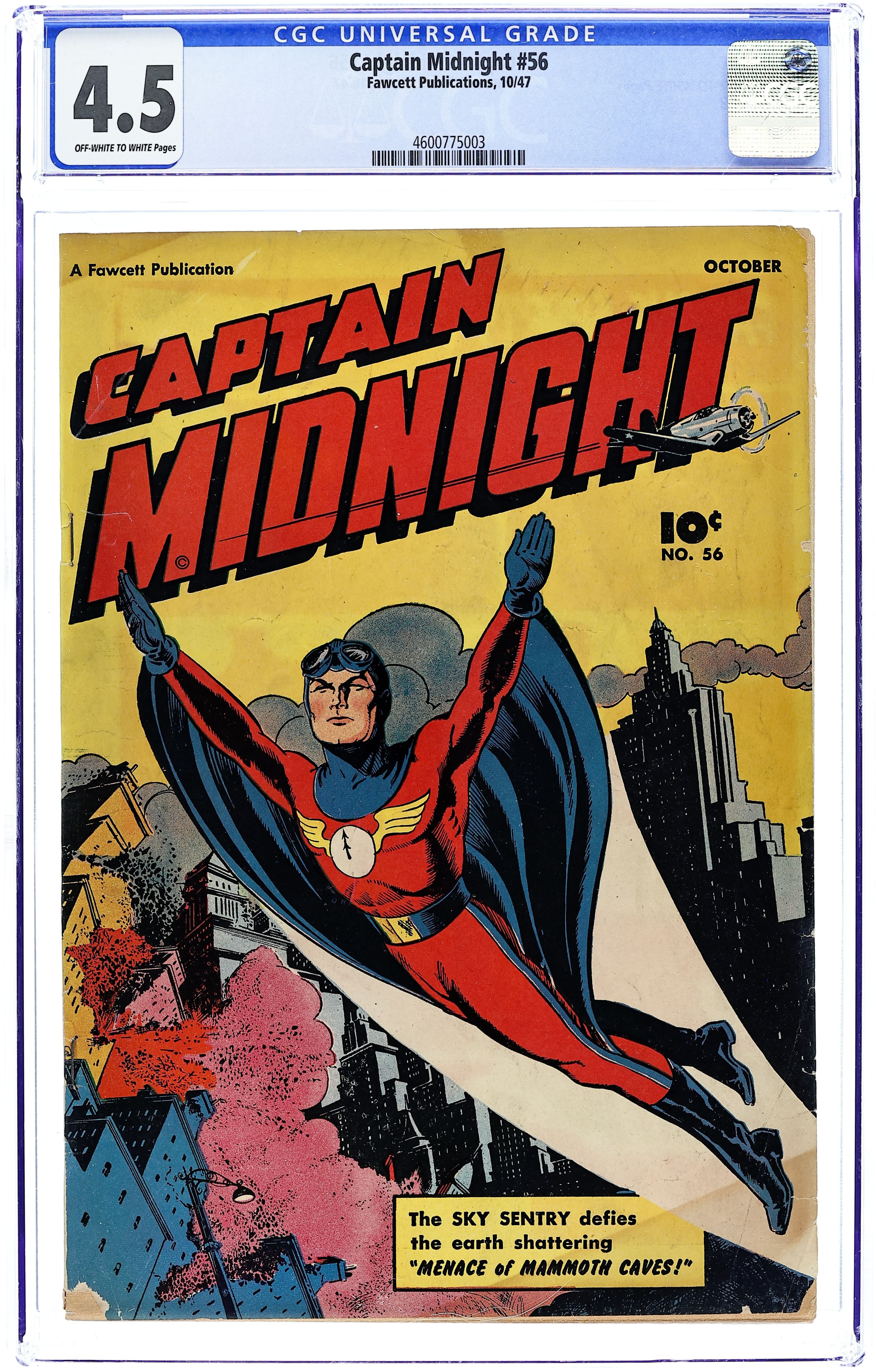 Cover by C.C. Beck and Pete Costanza. Stories by Otto Binder, Bill Woolfolk and unknown. Art by C.C. Beck and unknown. Captain Marvel (Billy Batson) stars in: "Sivana Plots Again" by Otto Binder and C.C. Beck; "The Country Slicker" with story by Otto Binder and pencils by C.C. Beck; "Marooned in the Future" by Otto Binder and C.C. Beck; "Station WHIZ Goes Television" by Bill Woolfolk and C.C. Beck; and "Captain Marvel Visits Kansas City, Missouri" with art by C.C. Beck. Plus: Captain Kid..."Takes a Flyer." And: 2-page text story "The Run-Around" by Justin Dewey Triem. 68 Pages, Full Color. Cover price $0.10.