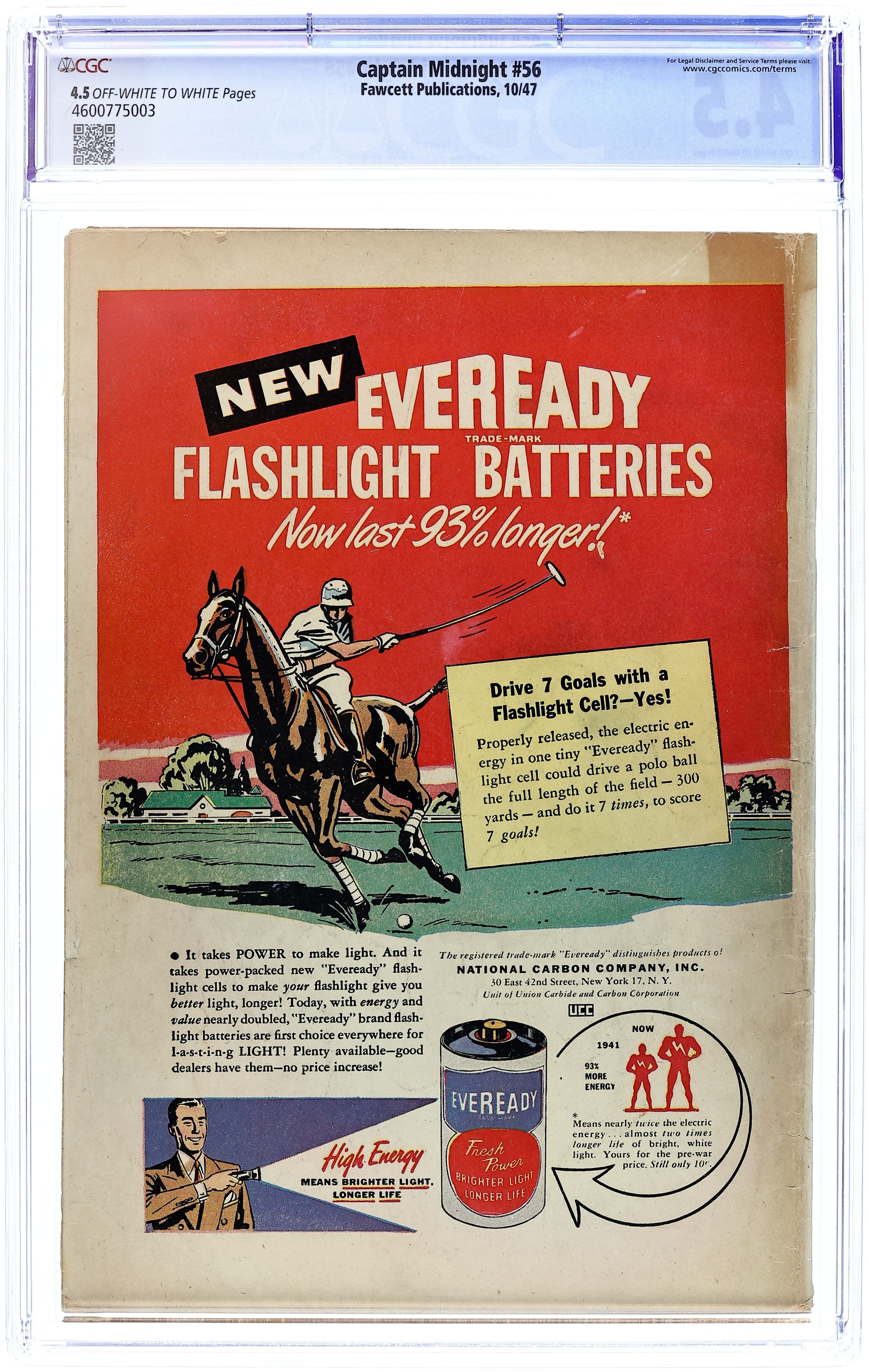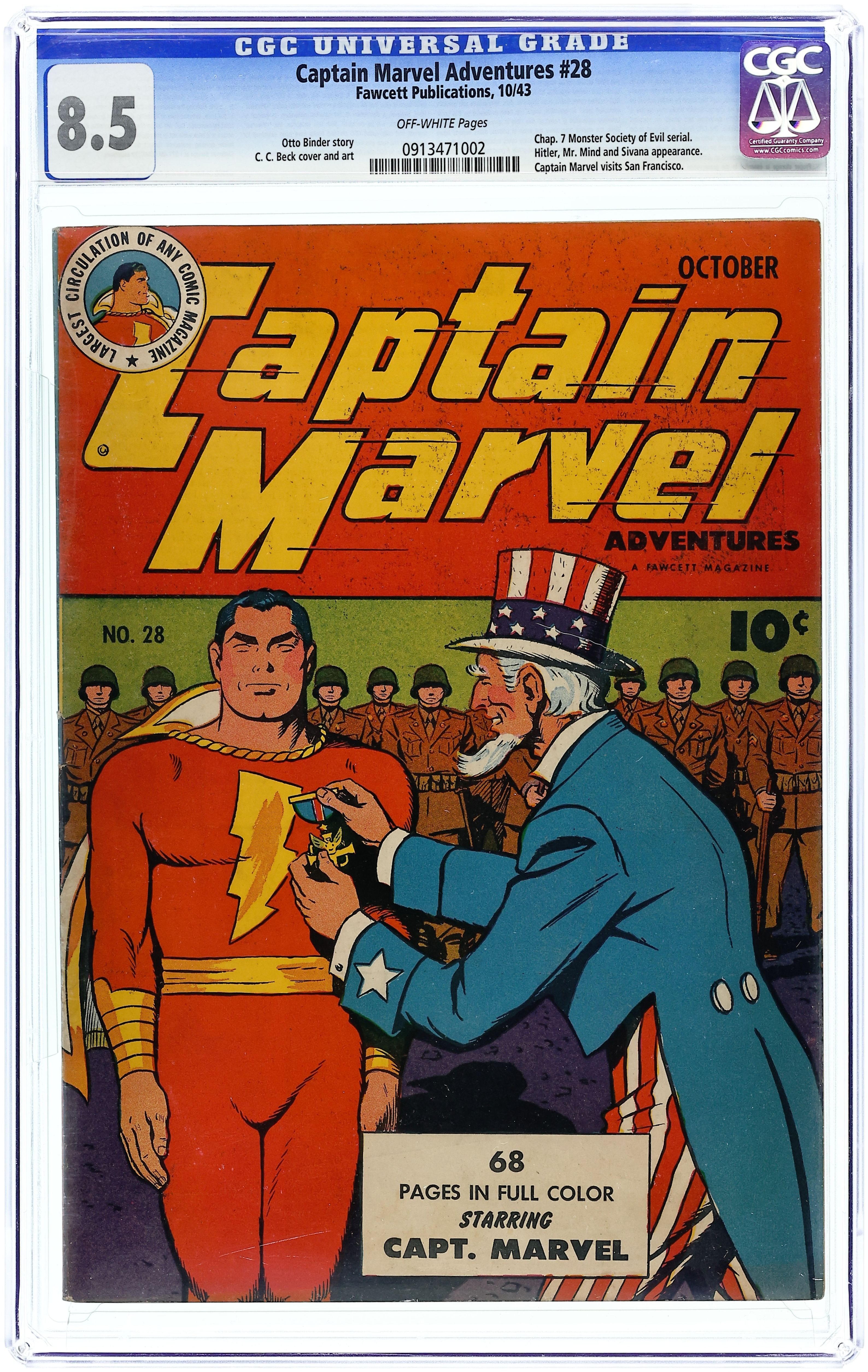 Cover by C.C. Beck. All stories written by Joe Simon, penciled by Jack Kirby, and inked by Dick Briefer. Captain Marvel stars in an untitled adventure in which the Big Red Cheese battles Dr. Sivana's super-robot "Z!" Also features "Capt. Marvel Out West," an untitled adventure in which Captain Marvel battles dragon-men from Saturn, and "Capt. Marvel Battles the Vampire," in which Billy Batson learns about vampires from a book by H.P. Lovecraft! Also features two one page fillers, "Capt. Marvel's Pencil-Puzzle-Page" and "Bill Batson's Page of Games." 68 pages, full color. Cover price $0.10.