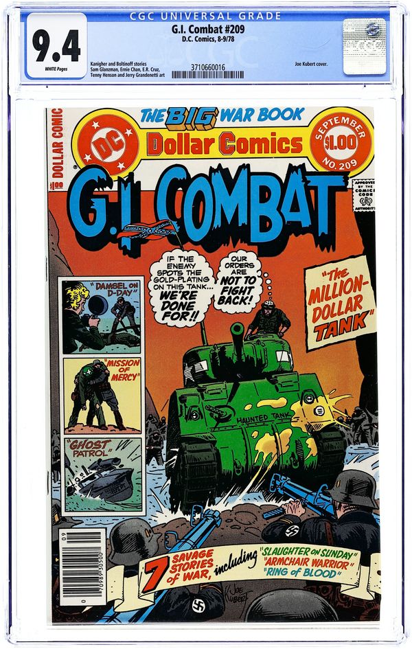 Cover by Joe Kubert. Written by Robert Kanigher, Bob Haney and unknown. Art by Russ Heath, Ric Estrada, Mort Drucker and Joe Kubert. Featuring the Haunted Tank in the battle-shocker "Let Me Live...Let Me Die" by Robert Kanigher and Russ Heath. Plus: Freedom Fighters story "Churchill at Omdurman," with art by Ric Estrada; "Sea Devil" by Bob Haney and Mort Drucker, reprinted from All American Men of War (1952) #65; and 1-pager "So You Want to Be a Cartoonist" by Joe Kubert. 36 Pages, Full Color. Cover price $0.15.