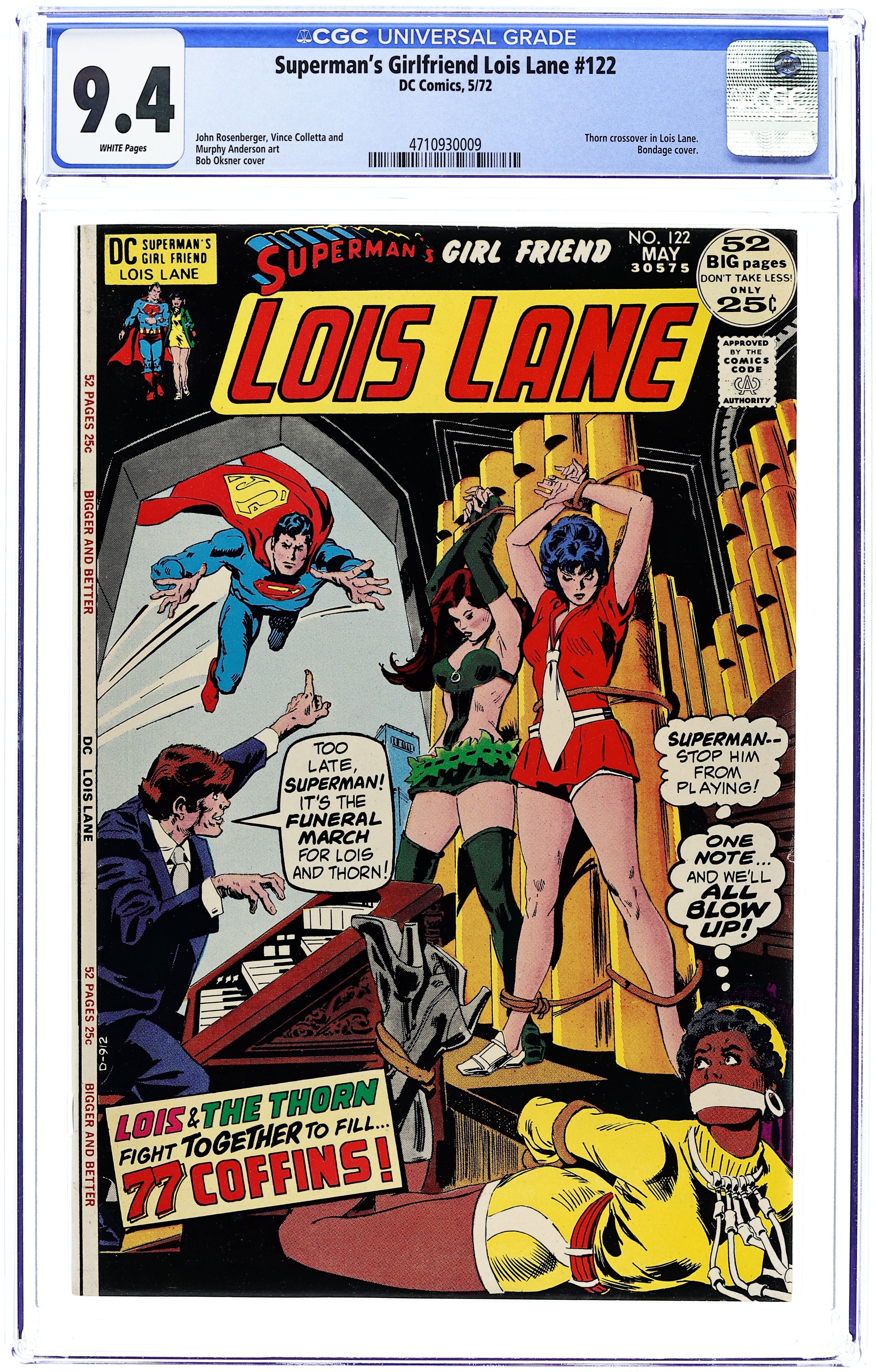Cover by John Rosenberger and Vince Colletta. Written by Cary Bates and Robert Kanigher. Art by John Rosenberger, Don Heck and Vince Colletta. A female crime boss hires a psychic to uncover Superman's secret identity and Lois begins having strange inexplicable dreams of killing Clark Kent in "The Mental Murder" by Cary Bates, John Rosenberger and Vince Colletta. Starring Lois Lane, Superman (Clark Kent), Jane Vixon, Boss-Lady Larue, Julie Spence, Kristen Cutler and Marsha Mallow. Plus: One of the men who killed Rose's father confesses to the crime in the last Rose and Thorn back-up story "Nightmare Alley!" by Robert Kanigher and Don Heck. Starring Thorn (Rose Forrest) and Detective Danny Stone. 36 Pages, Full Color. Cover price $0.20.