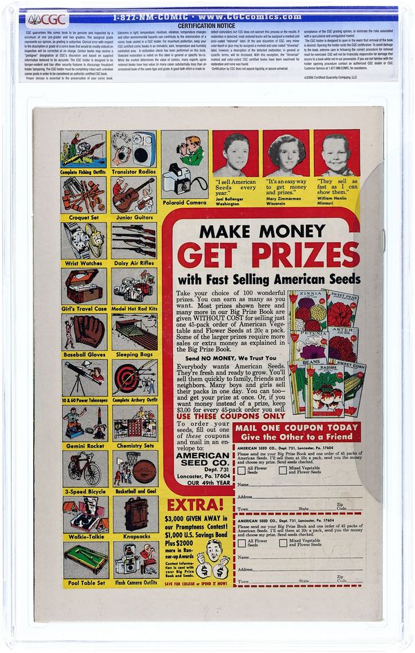 Written by Bob Haney. Art and cover by Nick Cardy. The Titans help the President's commission on Education deal with dropouts. Ding-Dong Daddy Dowd has been hiring dropouts to help in his hot-rod shop. The dropouts don't know, but their work is going into getaway cars for other criminals. "Ding Dong Daddy Dowd" is a gentle spoof of, or tribute to, "Big Daddy" Ed Roth. Cap's Hobby Hints by Henry Boltinoff. 36 Pages, Full Color. Cover price $0.12.