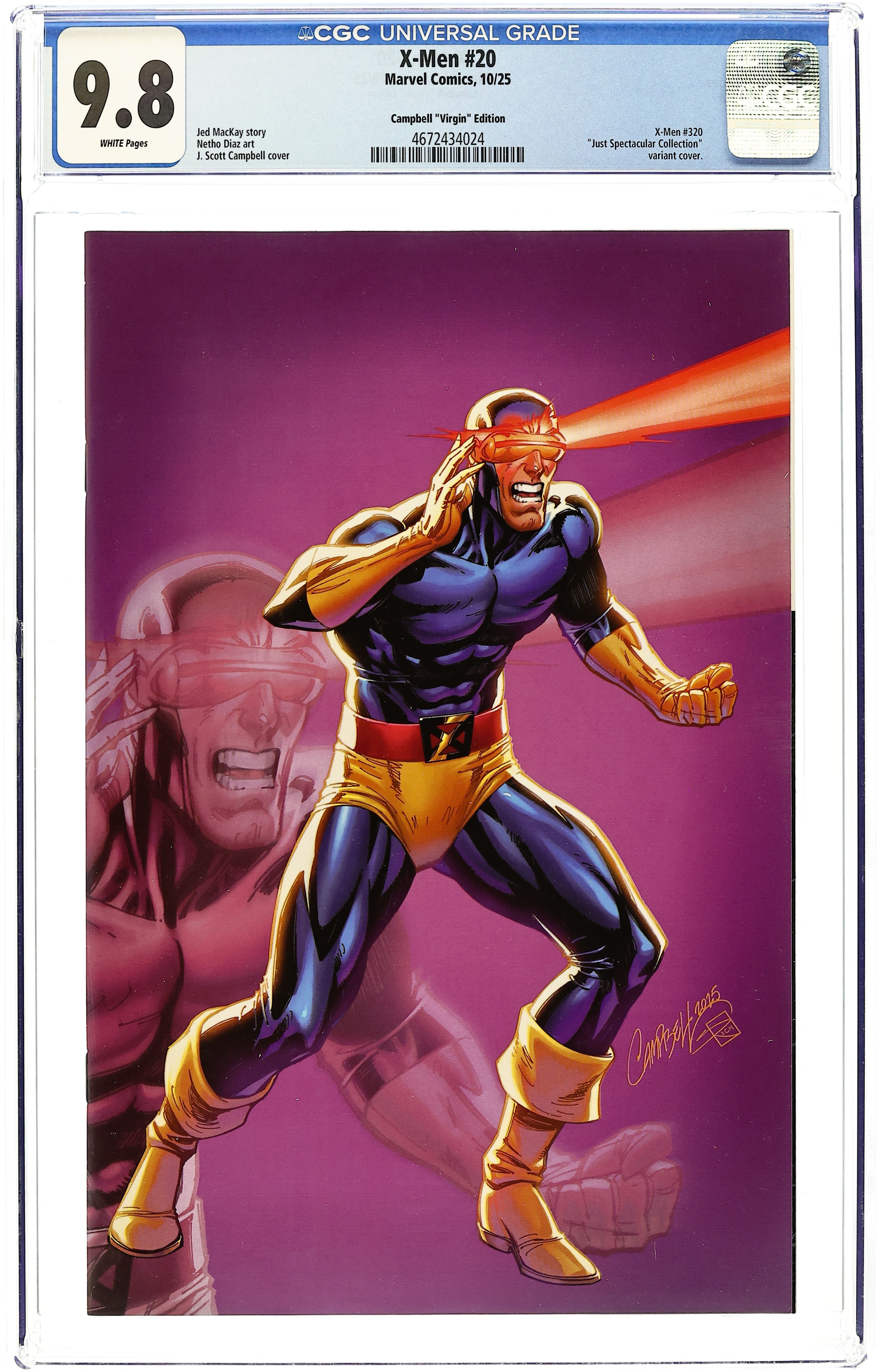 Limited 1 for 100 Retailer Incentive Variant Cover. Written by Jed MacKay. Art by Ryan Stegman. Cover by J Scott Campbell. FROM THE ASHES! Krakoa is gone, ORCHIS has fallen...but the X-Men remain, always. Cyclops leads, because that is what he does. Beast builds, because that is what he does. And from their new home in Alaska, the X-Men raise a flag of defiance. Mutant business is their business. Join CYCLOPS, BEAST, MAGNETO, PSYLOCKE, KID OMEGA, TEMPER, MAGIK and JUGGERNAUT as new forces in the world move into position, battling for the destiny and philosophy of the mutant species. 40 pages, full color. Rated T+ Cover price $5.99.