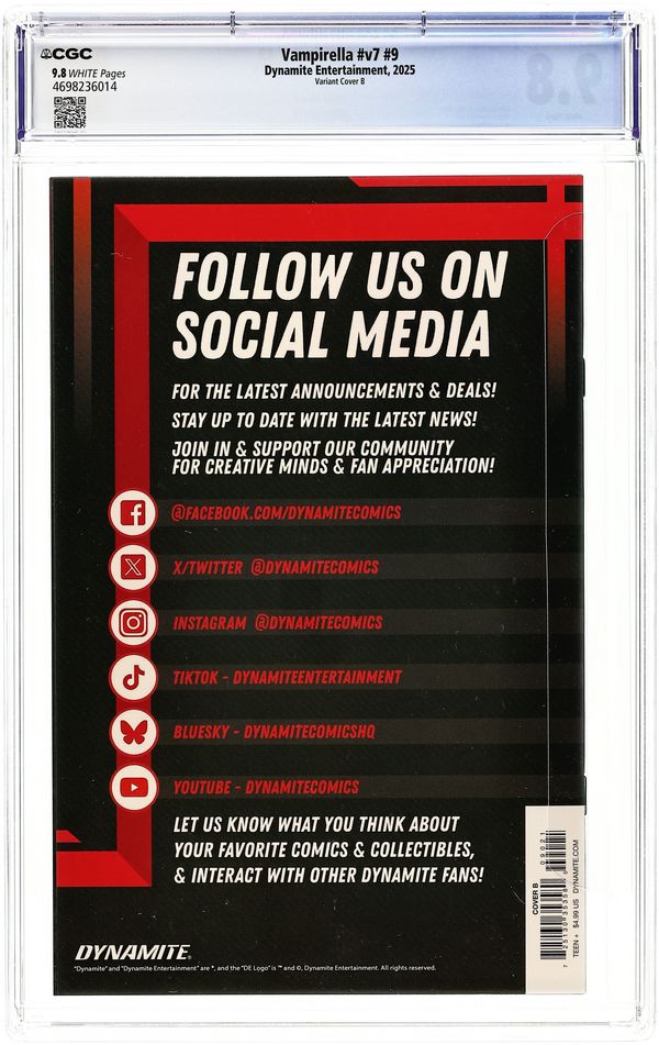 Tags: Vampirella, VampiresPublished 2025 (est.) by Dynamite Entertainment.Vampirella (2025 Dynamite) 9B CGC 9.8