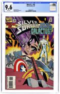 "What If the Silver Surfer Possessed the Infinity Gauntlet?" Script by Ron Marz, pencils by Scott Clark (with Kevin West), inks by Pamela Eklund. Guest starring Thanos and Adam Warlock. Appearances by Captain America, Mephisto, Doctor Strange, and Shalla-Bal. Cameos by Galactus, Wolverine, Cyclops, the Hulk, the Scarlet Witch, the Sub-Mariner, She-Hulk, Eros, the Vision, Cloak, Firelord, Drax the Destroyer, Thor, Nova, Quasar, Iron Man, Spider-Man, Doctor Doom, Nebula, Terraxia, and Captain Marvel. Cover price $1.25.