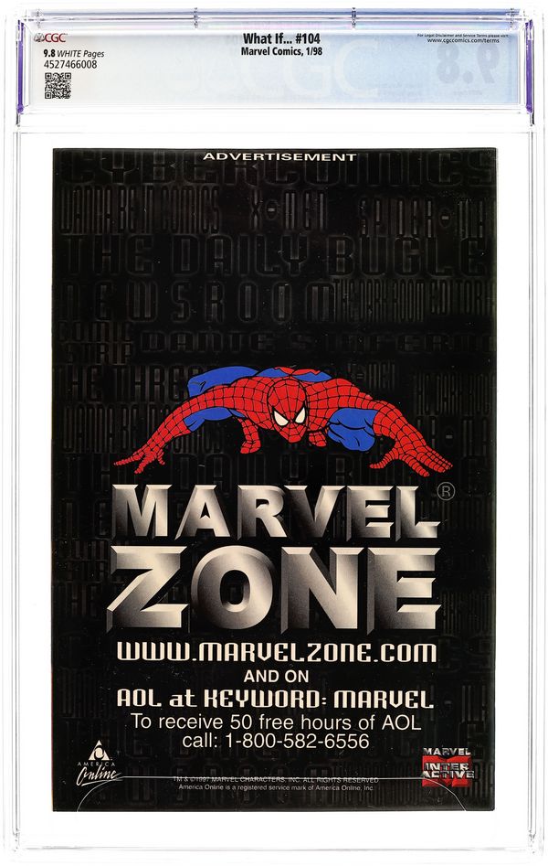 Cover pencils by Kirk Jarvinen, inks by John Beatty. What If Spider-Man's "Parents" Destroyed his Family?, script by Kurt Busiek, pencils by Jim Amash, Kirk Jarvinen, Andrew Wildman, and Derek Yaniger, inks by Sam de la Rosa, Bruce Patterson, and Jim Amash; robots impersonating Spider-Man's parents frame him for murder; Aunt May Parker; Mary Jane Watson, Flash Thompson, J. Jonah Jameson, Robbie Robertson, Vulture, Chameleon, Captain America [Steve Rogers], Human Torch [Johnny Storm], the Avengers, the Fantastic Four, the New Warriors, and the Watcher appear. 36 pgs. $1.50. Cover price $1.50.