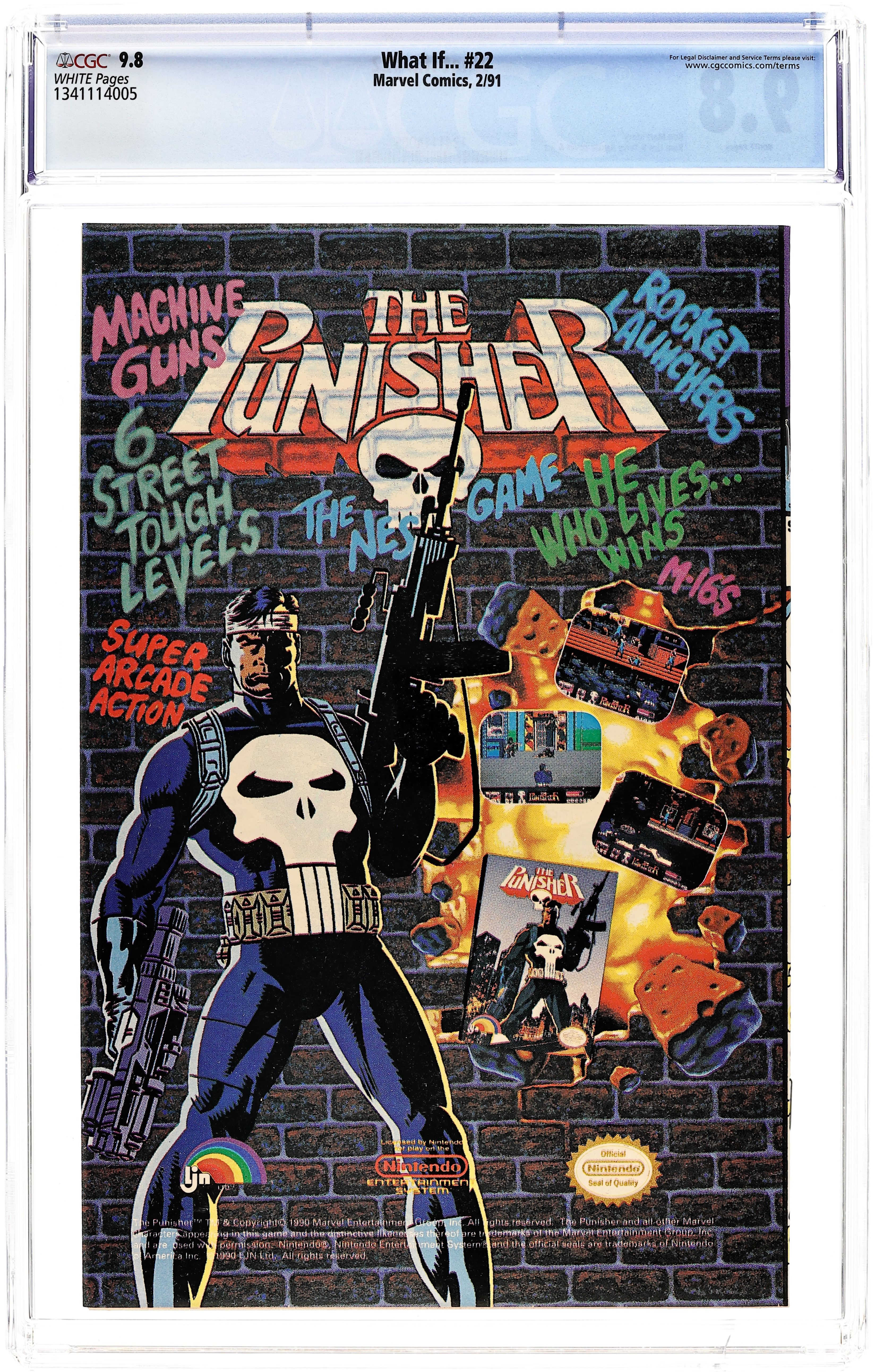Direct Edition. Cover art by Luke McDonnell. "What If Venom Had Possessed the Punisher," script by Kurt Busiek, art by Luke McDonnell; Frank Castle was at the church that Peter Parker ditched the Venom symbiote at, and as a result, became a more violent, powerful, and lethal version of the Punisher, killing Tombstone and the Kingpin; The symbiote began to use Frank's body while he slept, in an effort to take over his body; Spider-Man, along with the help of Daredevil and Moon Knight, learned about the symbiote's plans and confronted Frank; From there, he began an internal struggle with the symbiote that he eventually won, by vowing to kill himself and the symbiote if he didn't regain control; The symbiote backed down, and Frank remained in control of it, his discipline intact; At that point, the other heroes let him go, worrying that they'd have bigger worries in the future than a more powerful Punisher, and that they might need his help. 36 pgs., full color. Cover price $1.25.