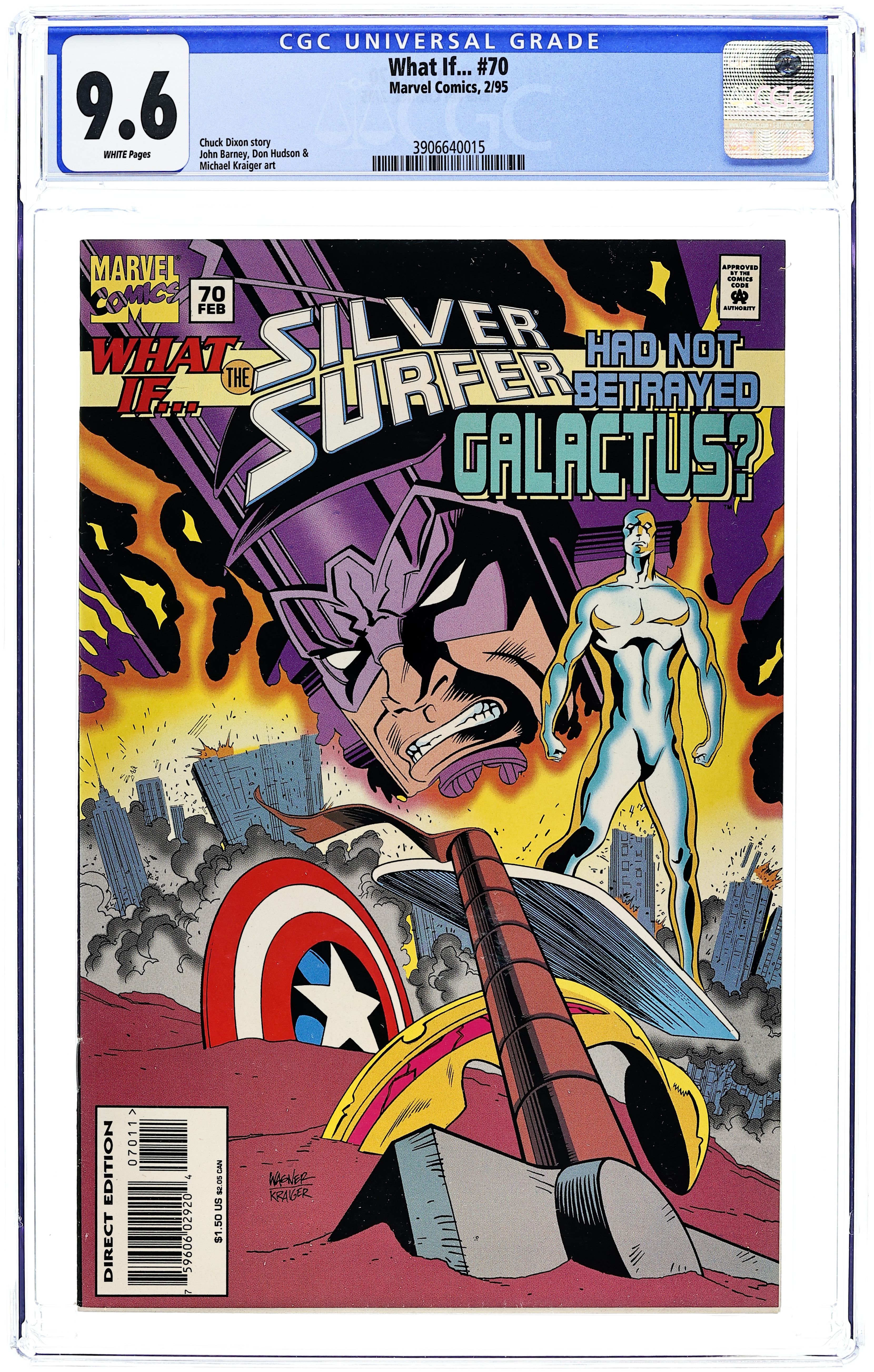 Cover inks by Michael Kraiger. What if the Silver Surfer Had Not Betrayed Galactus?, script by Chuck Dixon, pencils by Joe Barney; Don Hudson, inks by Joe Barney, Don Hudson, and Michael Kraiger; Galactus destroys Earth because the Silver Surfer doesn't help the Fantastic Four; based on FF #50. 36 pgs. $1.50. Cover price $1.50.