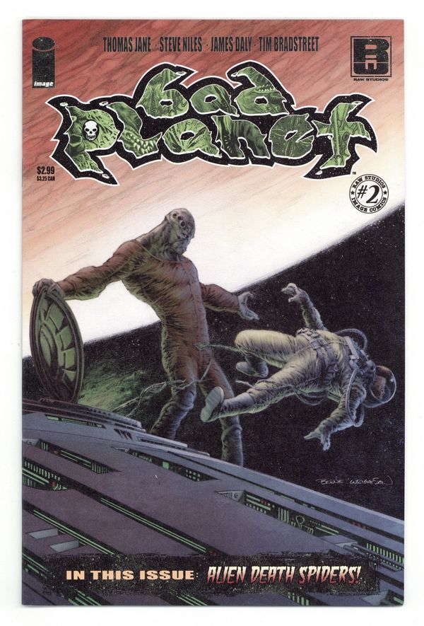$17.00written by STEVE NILES & THOMAS JANE art by LEWIS LAROSA & TIM BRADSTREET cover by BERNIE WRIGHTSON Introducing the Phaedon Warrior, our hero who has been imprisoned since his own planet was mysteriously destroyed by the same alien beasts that now plague the Earth - the fearsome, loathsome DeathSpiders! Cover price $2.99.