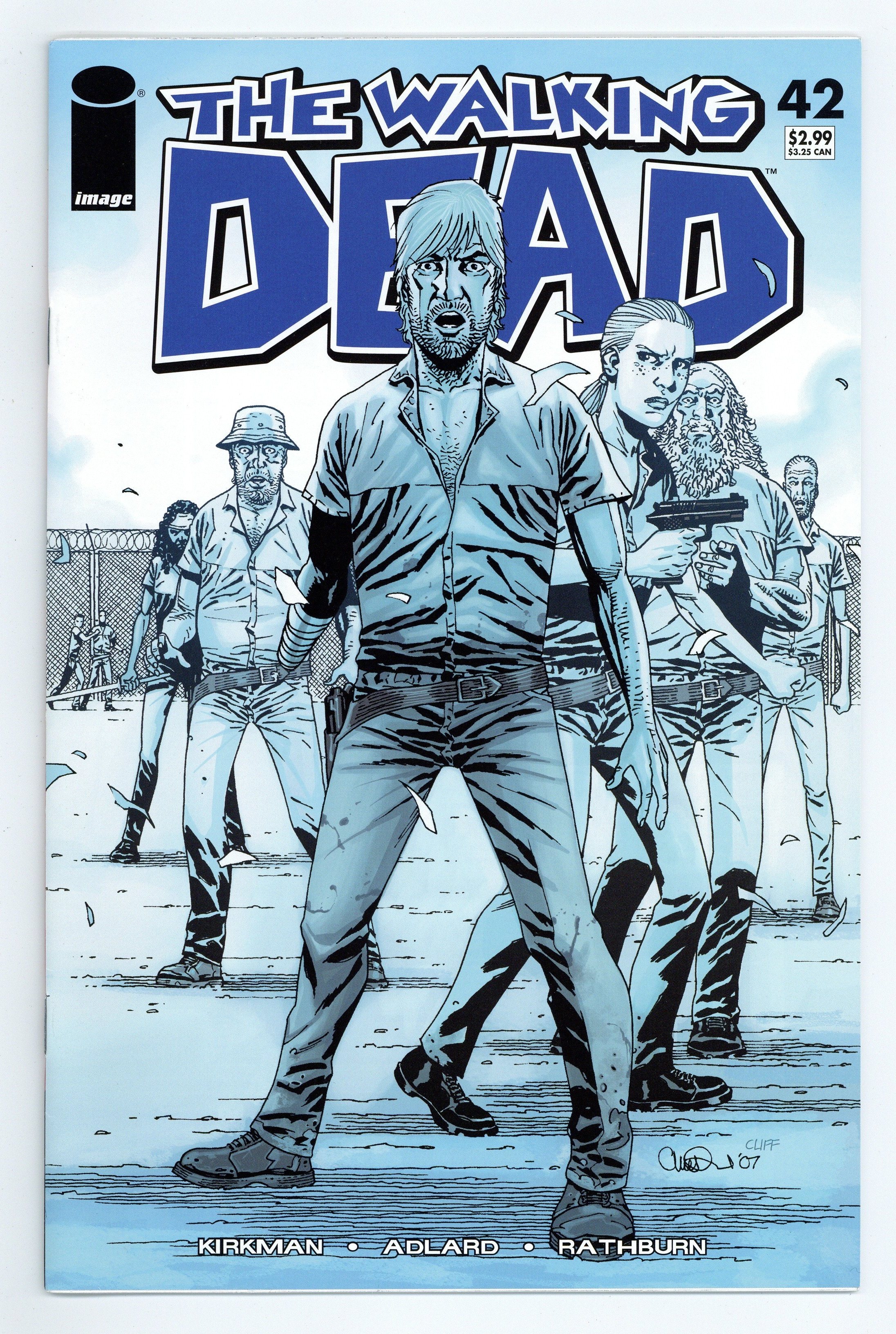 $21.50Written by Robert Kirkman. Art and Cover by Charlie Adlard and Cliff Rathburn. The time has come. Characters in this story: Rick Grimes; Dale; Andrea; Tyreese; Lori Grimes; Carl Grimes; Glenn; Maggie; Alice; Billy; Herschel; Axel; Carol; Sophia; Michonne; Patricia; The Governor. 32 pages, B&W (gray tones). RETAILER WARNING: MAY NOT BE SUITABLE FOR ALL AGES Cover price $2.99.