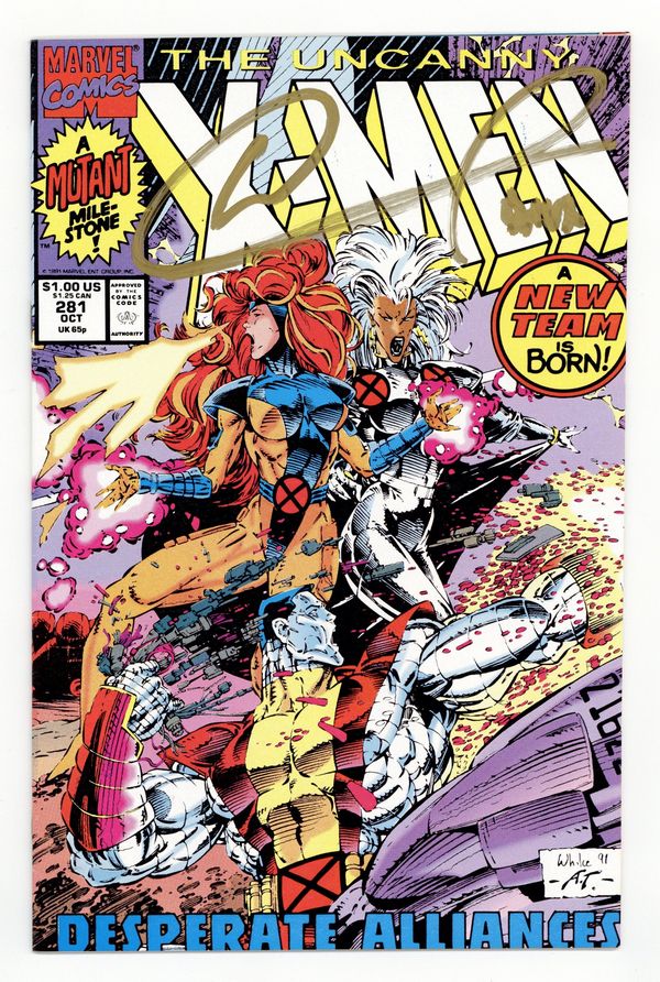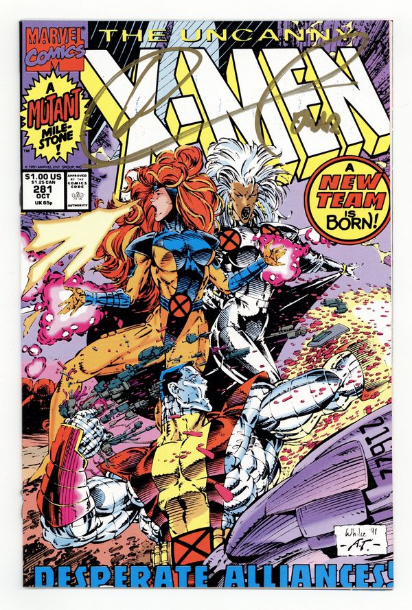 Comics X-Press Signed Edition. Autographed by Whilce Portacio with Comics X-Press Photo certificate of authenticity. This is the 1st printing, which has a white title logo (the second printing has a red title logo). The Sentinels are back in "Fresh Upstart." Script by John Byrne, plot by Jim Lee and Whilce Portacio, pencils by Portacio, inks by Art Thibert. Portacio/Thibert wraparound cover. Limited to 3,000 copies. 36 pgs.