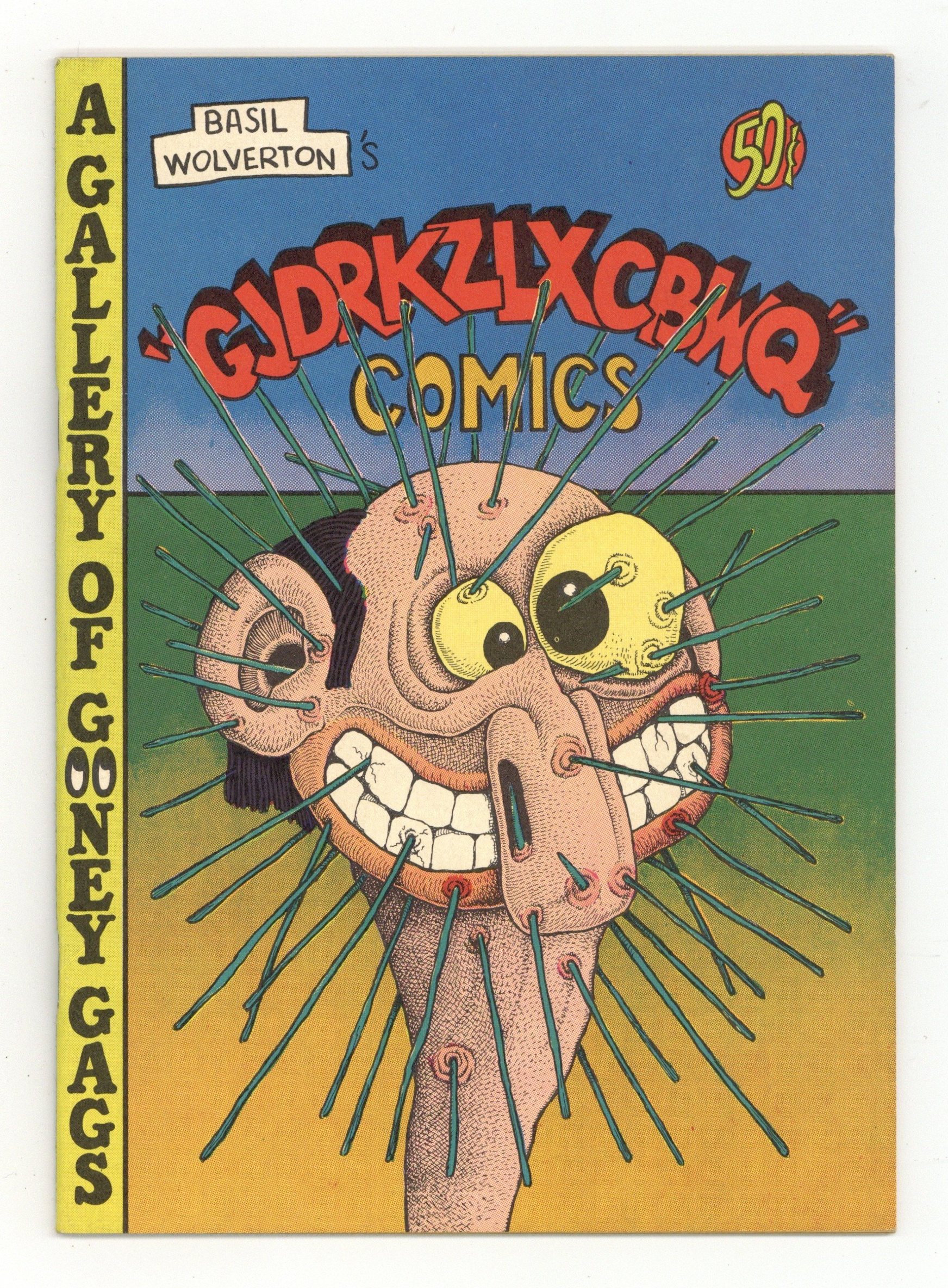 Gjdrkzlxcbwq Comics (1975), 36 pages of pure Basil Wolverton's bizarre pinups of Plop-like freaks, mutants and general weirdos. 5 1/4" x 7 1/4"; color cover with black-and-white interior. Publisher: Glenn Bray. Cover price $0.50.