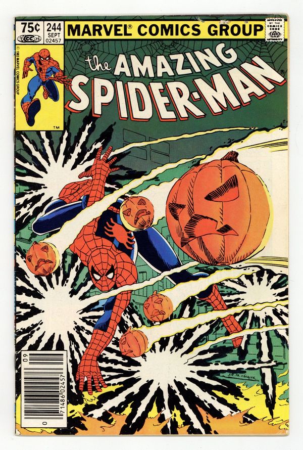 $14.00Canadian edition with $0.75 cover price. "Ordeals!" Part 1 of 2. Third appearance of the Hobgoblin. Script by Roger Stern. Art by John Romita Jr. (breakdowns) and Klaus Janson (finishes). Cover by John Romita Jr. and Bob Wiacek. Last issue Peter Parker made the very tough decision to drop out of graduate school. At this point Aunt May doesn't know that he did. When she finds out...she won't be happy. Meanwhile the burglaries at the Osborn facilities continue! Fortunately on the eastside docks the web-slinger catches one in progress! Can Spider-Man corral the Hobgoblin this time? Cameo appearances by the Black Cat, Mary Jane Watson, Harry & Liz Osborn, and Dr. Morris Sloan. (Note: This two-part story was reprinted in the 1992 trade paperback: The Origin of the Hobgoblin; and the 2011 trade paperback also titled: The Origin of the Hobgoblin.) Cover price $0.75.