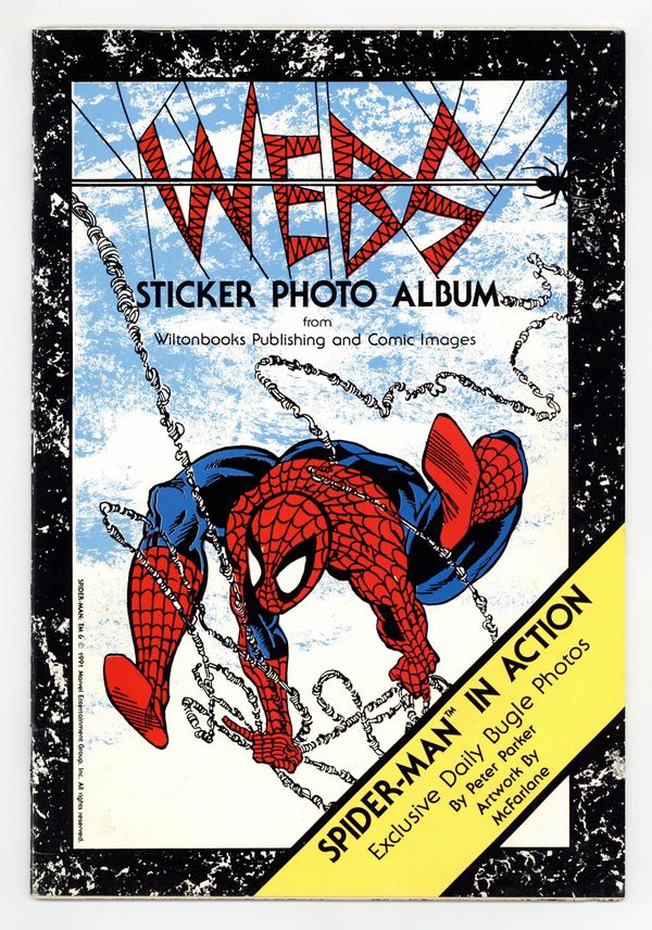 Tags: STICKER ALBUMPublished 1991 by Comic Images.$26.00Art by Todd McFarlane. 24 pgs. B&W with color cover. Stickers were sold separately; book may or may not come with stickers affixed.