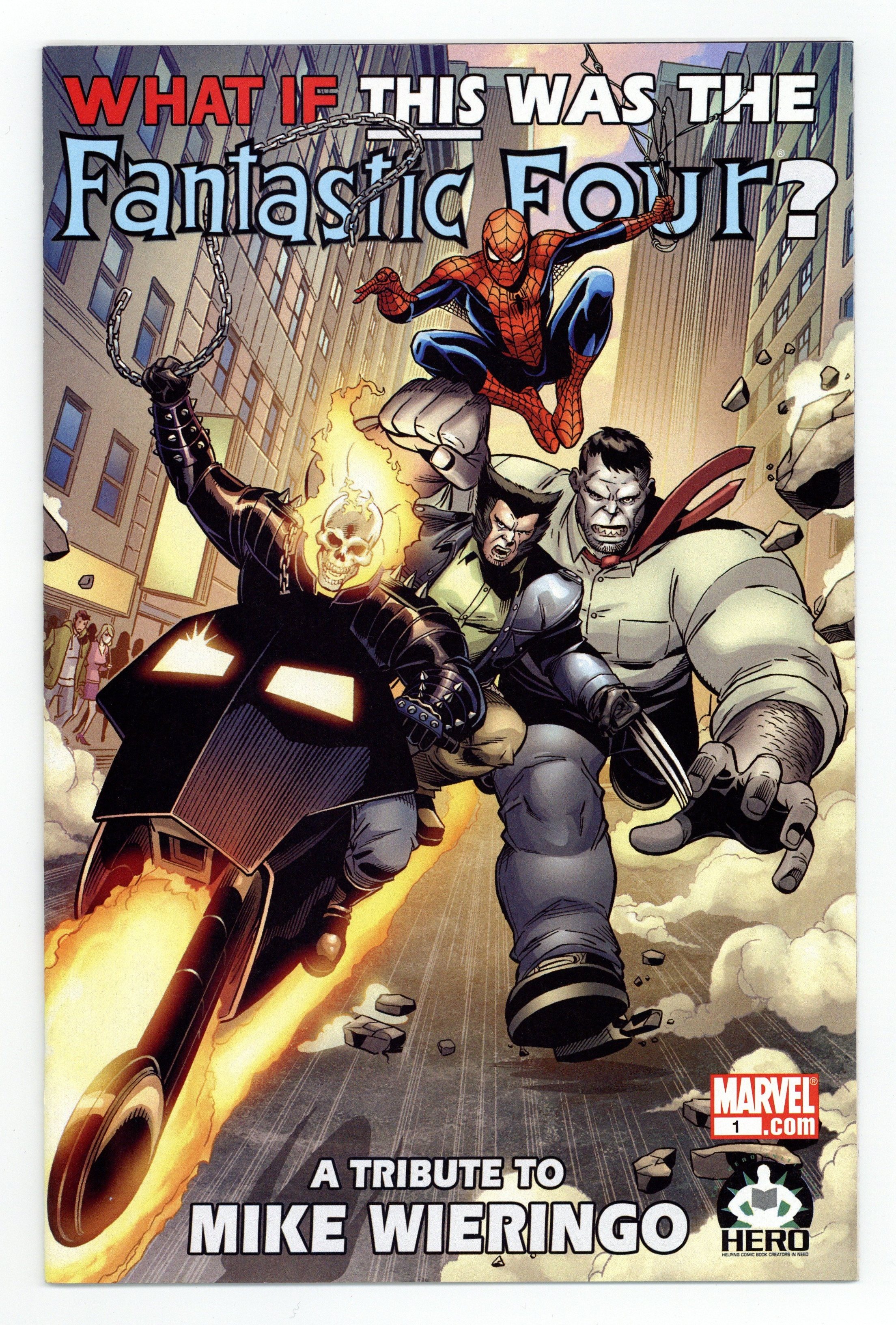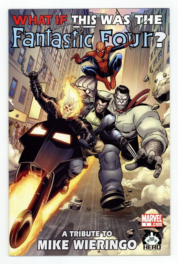 Tribute to Mike Wieringo. by Parker, Wieringo, Kesel, Staples & Various Before artist Mike Wieringo passed away, he had completed seven pages of a What If? story featuring the 'replacement' Fantastic Four: Spider-Man, the Hulk, Ghost Rider and Wolverine! Marvel Comics generously donated the script and Mike's art to The Hero Initiative. Mike's talented friends and fans stepped up to finish the story, and pay tribute to Mike in this great tale! This awesome 48-page book contains the full story, and additional written tributes to Mike, and includes artists Arthur Adams, Paul Renaud, Stuart Immonen, Cully Hamner, Alan Davis, Brian Stelfreeze, David Williams, Sanford Greene, Humberto Ramos, Skottie Young, Mike Allred, and Barry Kitson. Cover by Mike Wieringo and Paul Mounts. This benefit for The Hero Initiative is published with the full approval of Marvel Comics, and on the advice and consent of the family of Mike Wieringo. Cover price $4.99.