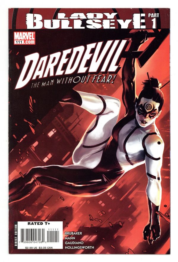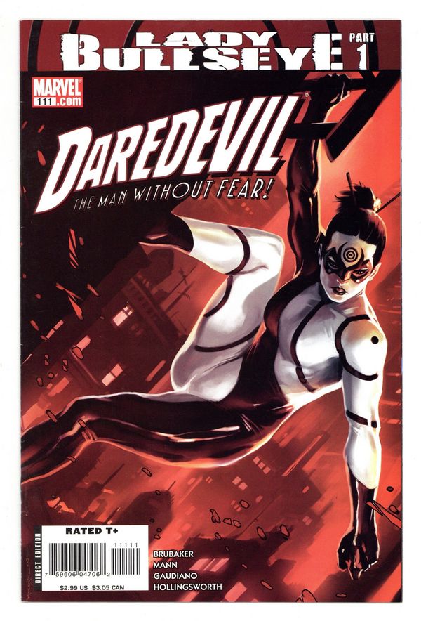 Cover by Marko Djurdjevic. Lady Bullseye: Part 1 of 5 - Written by Ed Brubaker Penciled by CLAY MANN. Be there when Matt Murdock first encounters a shocking new face -- Lady Bullseye! Who is she? Where did she come from? What does she want? And will she be a foe to Daredevil...or a friend? We can't make a peep yet, but it's the perfect jumping-on point as an alarming new chapter begins in the acclaimed DAREDEVIL run by Ed Brubaker and Michael Lark! LADY BULLSEYE!! 32 PGS./Rated T+ Cover price $2.99.