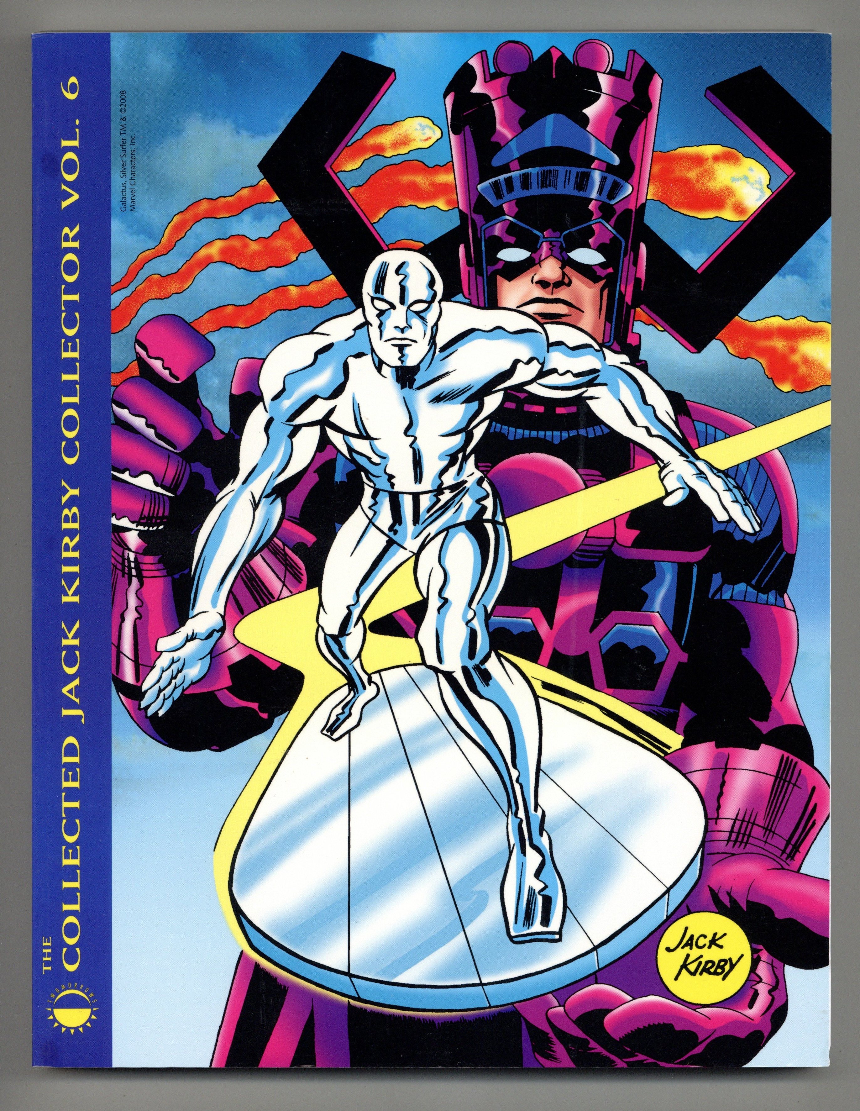 Volume 6 - 1st printing. Collects Jack Kirby Collector (1994) #23-26. Edited by John Morrow. As Jack Kirby continues to garner worldwide acclaim as comics' greatest creator, this sixth trade paperback continues to collect the critically acclaimed magazine about Kirby's life and career. Included are issues spotlighting Jack's "Greatest Battles," "Gods," and a special issue spotlighting Kirby's Golden Age work with Joe Simon, from co-creating Captain America to pioneering Romance comics and beyond! There are several rare interviews with Kirby himself, plus new ones with comics pros Denny O'Neil, Jim Shooter, John Severin, and Walter Simonson! Plus: see a complete ten-page unpublished Kirby story! Jack's awe-inspiring original pencils to Fantastic Four #49 (from the first appearance of the Silver Surfer)! A gallery of Kirby's original concept paintings for the Fourth World characters! An analysis comparing Kirby's margin notes to Stan Lee's dialogue on classic Marvel comics! And a new special section with over 30 pieces of Kirby art never before published, including Jack's un-inked pencils from The Fourth World, The Demon, Kamandi, Eternals, Captain America, Black Panther, and more! With page after page of rare Kirby art (much in its original pencil form), and an amazing 1960s Kirby Silver Surfer cover, it's an unprecedented tribute to the most prolific creator in comics history: Jack "King" Kirby! Softcover, 8 1/2-in. x 11-in., 288 pages, B&W. Cover price $29.95.