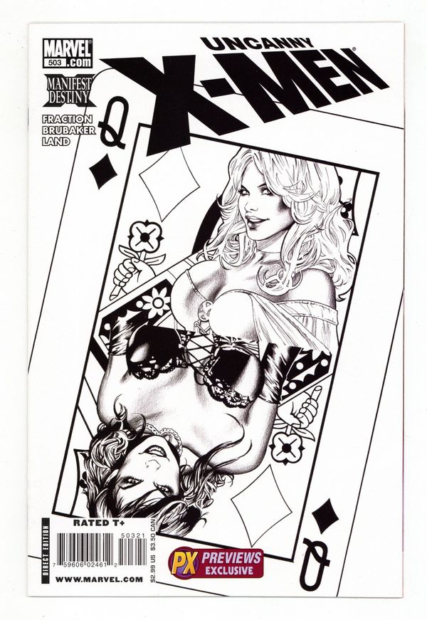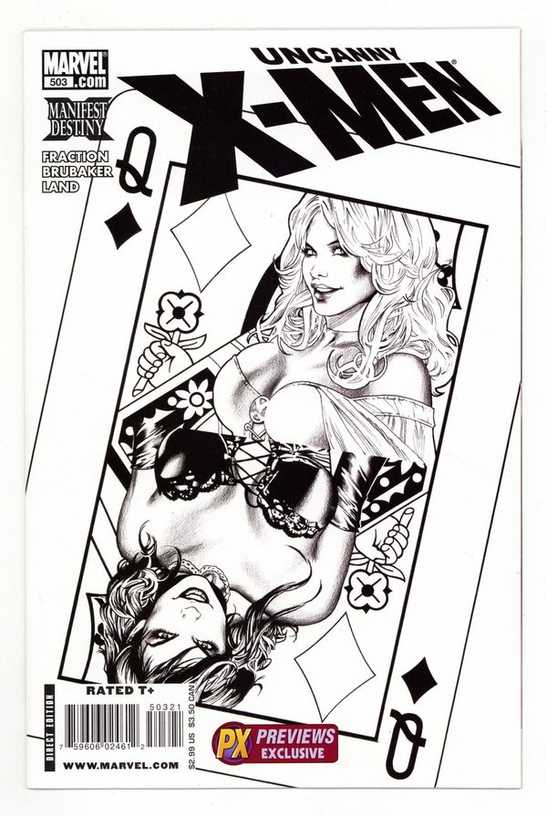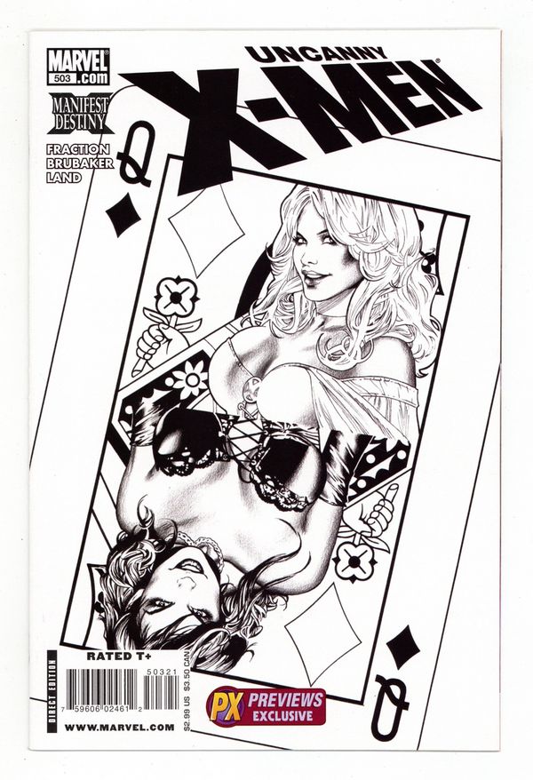 Limited Edition Sketch Variant Cover by Greg Land. X-Men: Manifest Destiny tie-in - Written by MATT FRACTION & ED BRUBAKER. Pencils & Cover by GREG LAND. Who will save the X-Men from the Hellfire Cult? It's not Wolverine. It's not Cyclops. But it better be someone because they're a minute from death. And who is that mysterious red-head? 36 PGS./Rated T+ Cover price $2.99.