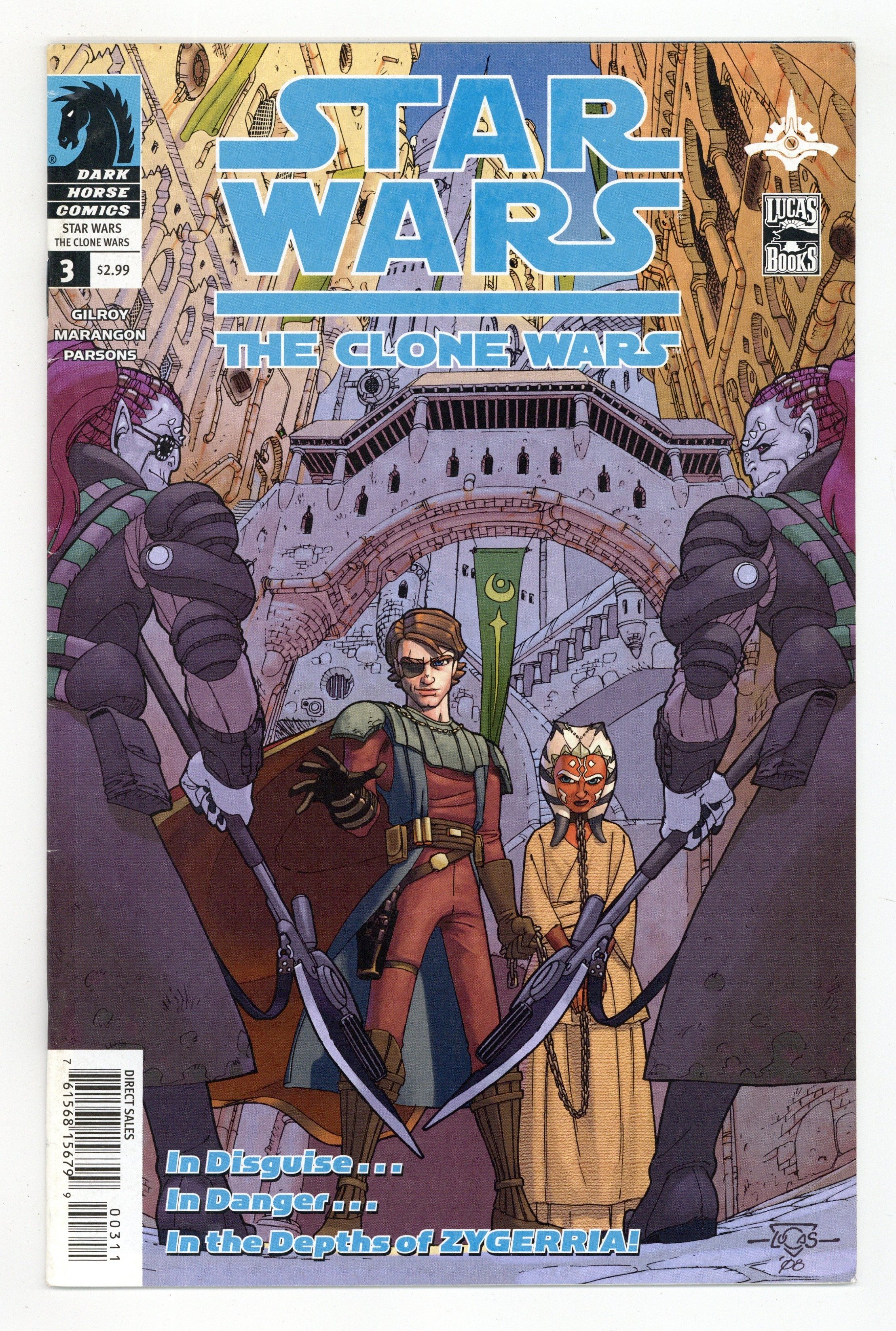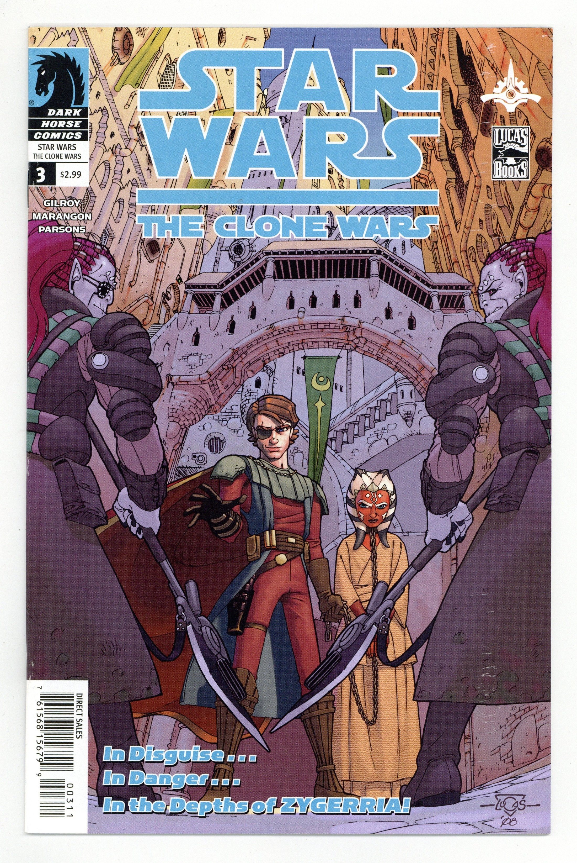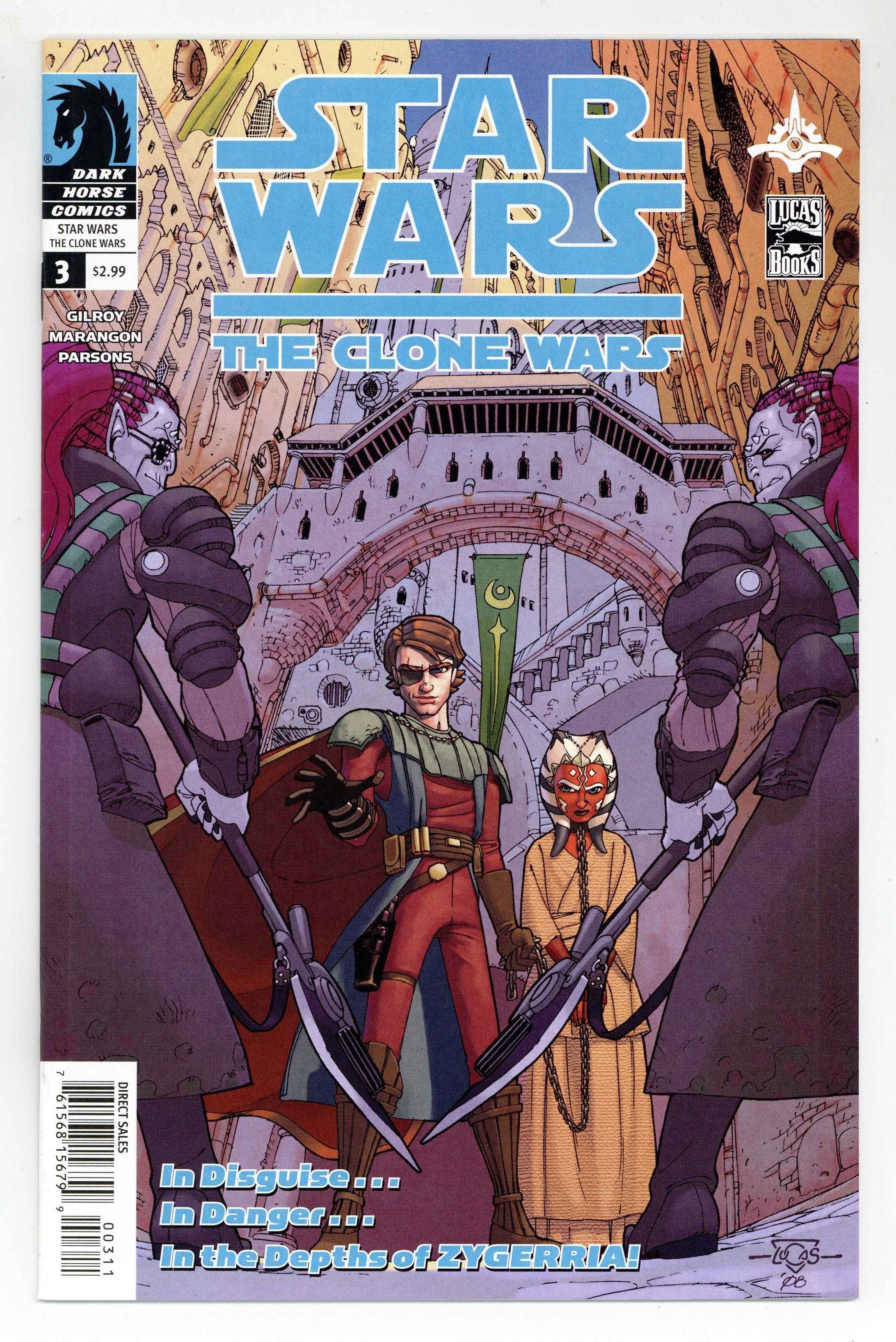 Henry Gilroy (W), Lucas Marangon (P/Cover), and Dan Parsons (I) Eighty million Togruta from the planet of Kiros have suddenly disappeared! It's up to Anakin Skywalker, Obi-Wan Kenobi, and Togruta Padawan Ahsoka Tano to find the lost population . . . A clue leads the Jedi to the Zygerria system: massive slave auctions have been held there in the past, and will be taking place again soon-with the unfortunate Togruta on the auction block! FC, 40 pages Cover price $2.99.