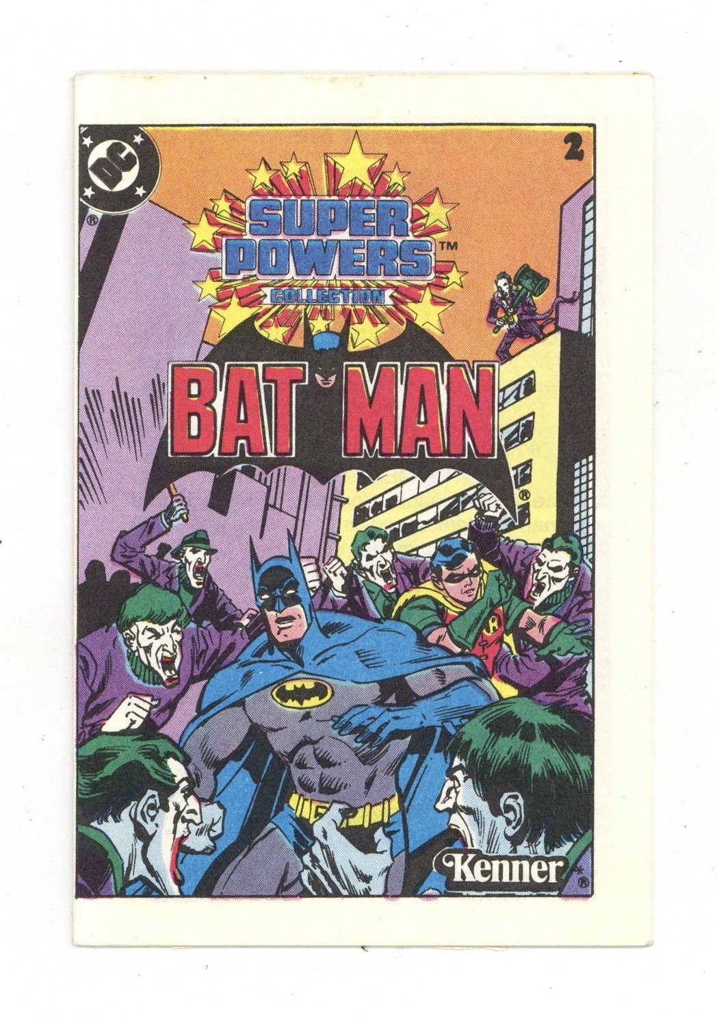 The mini comics were packaged with Kenner Toys DC Super Powers Collection line. They measure 4 1/4 x 2 3/4 with 16 pages all in color. #2 Batman. Batman and Robin get a little help from Wonder Woman in dealing with the Joker and his army of Jokers!