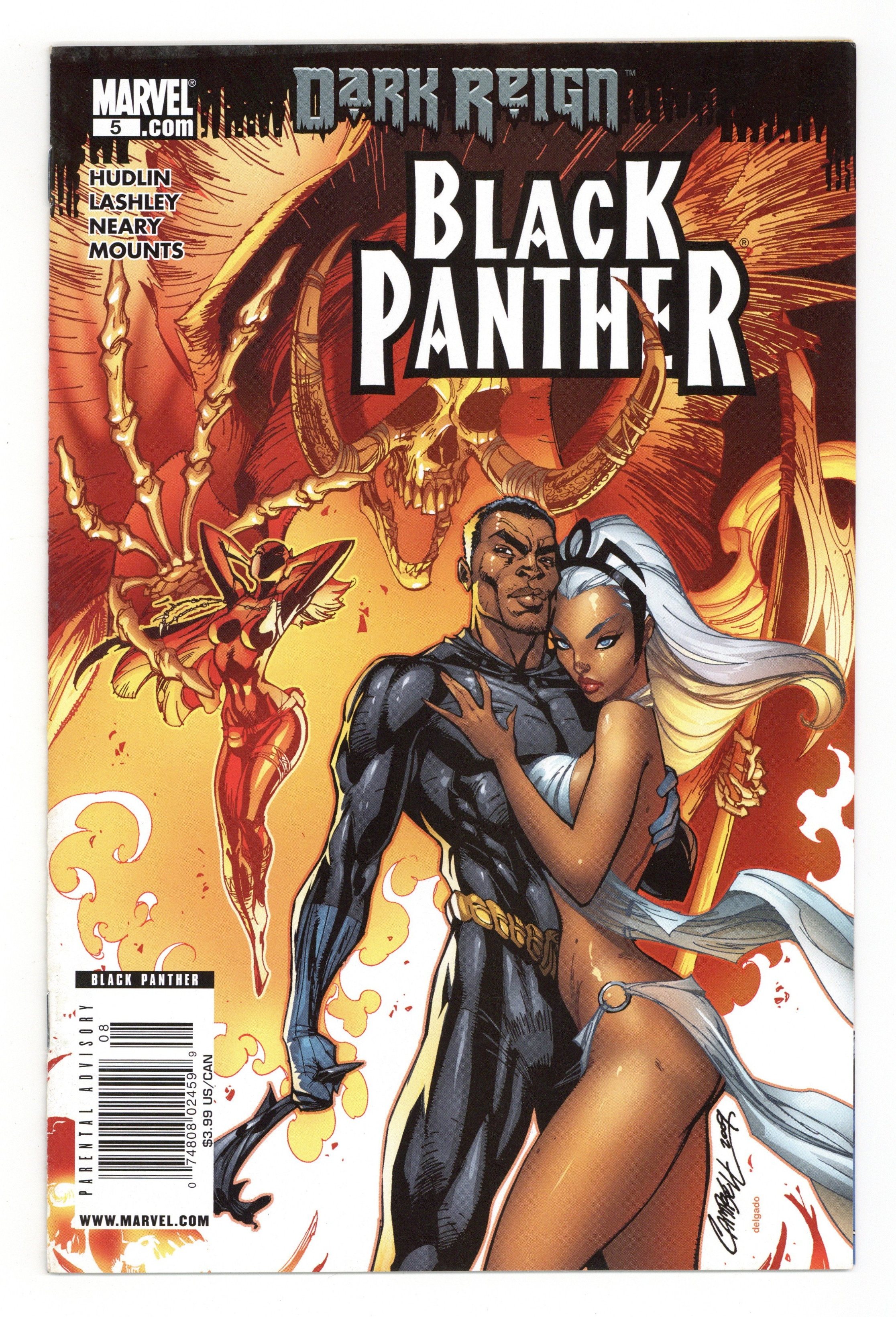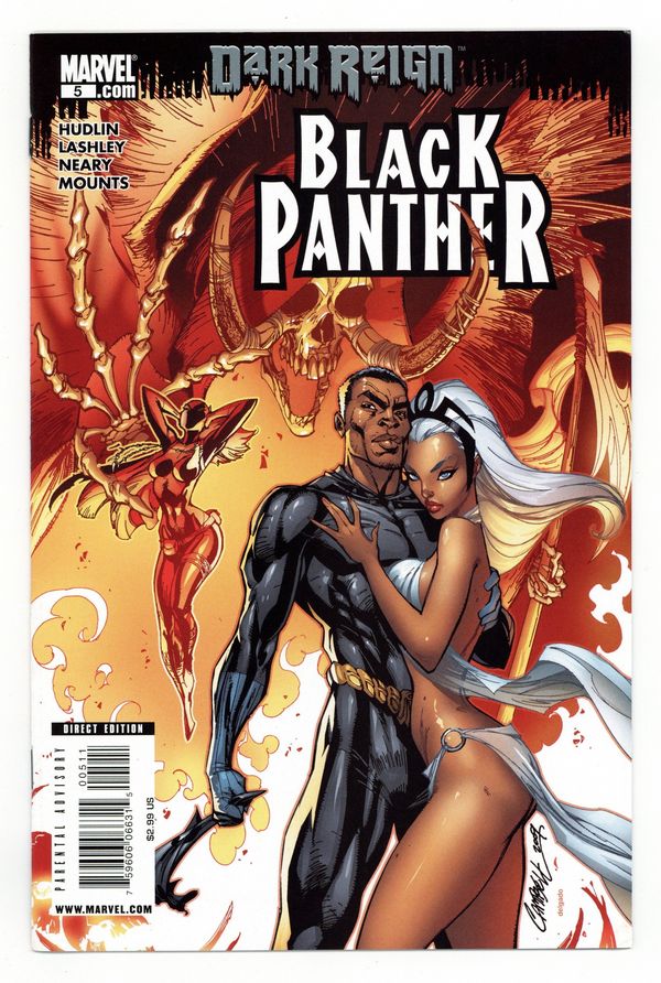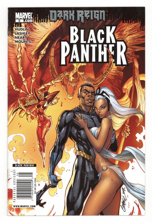 $18.50Dark Reign tie-in - Deadliest of the Species: Part 5 - Written by REGINALD HUDLIN. Art by KEN LASHLEY. Cover by J. SCOTT CAMPBELL. Wakanda stands at the brink. Morlun - Devourer of Totems - is cutting through the Wakanda army life a hot knife through butter as he descends on the palace to feast on T'Challa's body. Absolutely nothing can stop him. Wakanda's only hope is the new Black Panther...if she's worthy to inherit the mantle. 32 pages. Cover price $2.99.