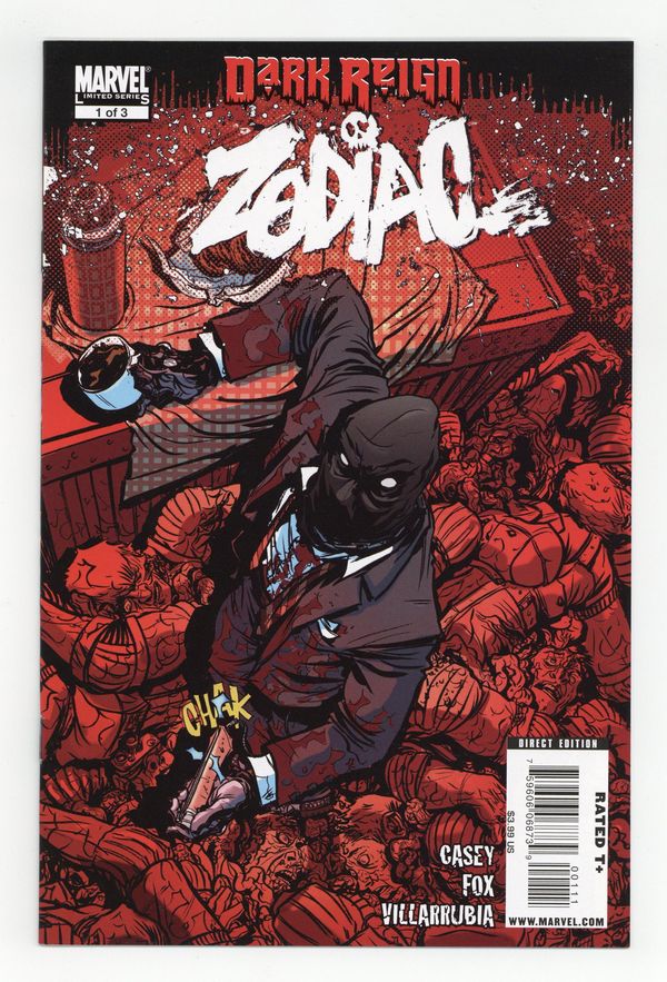 Written by JOE CASEY. Art and Cover by NATHAN FOX. Norman Osborn may be running the show, but not every super-villain is going to accept the new world order. But who - or what - is ZODIAC? In this dark, brooding tale that snakes through the underbelly of the modern Marvel Universe, the new breed of super-villain has finally arrived! The order of the day is 'mischief for mischief's sake,' and no one - neither hero *nor* villain - is safe! 32 pages full color. Cover price $3.99.