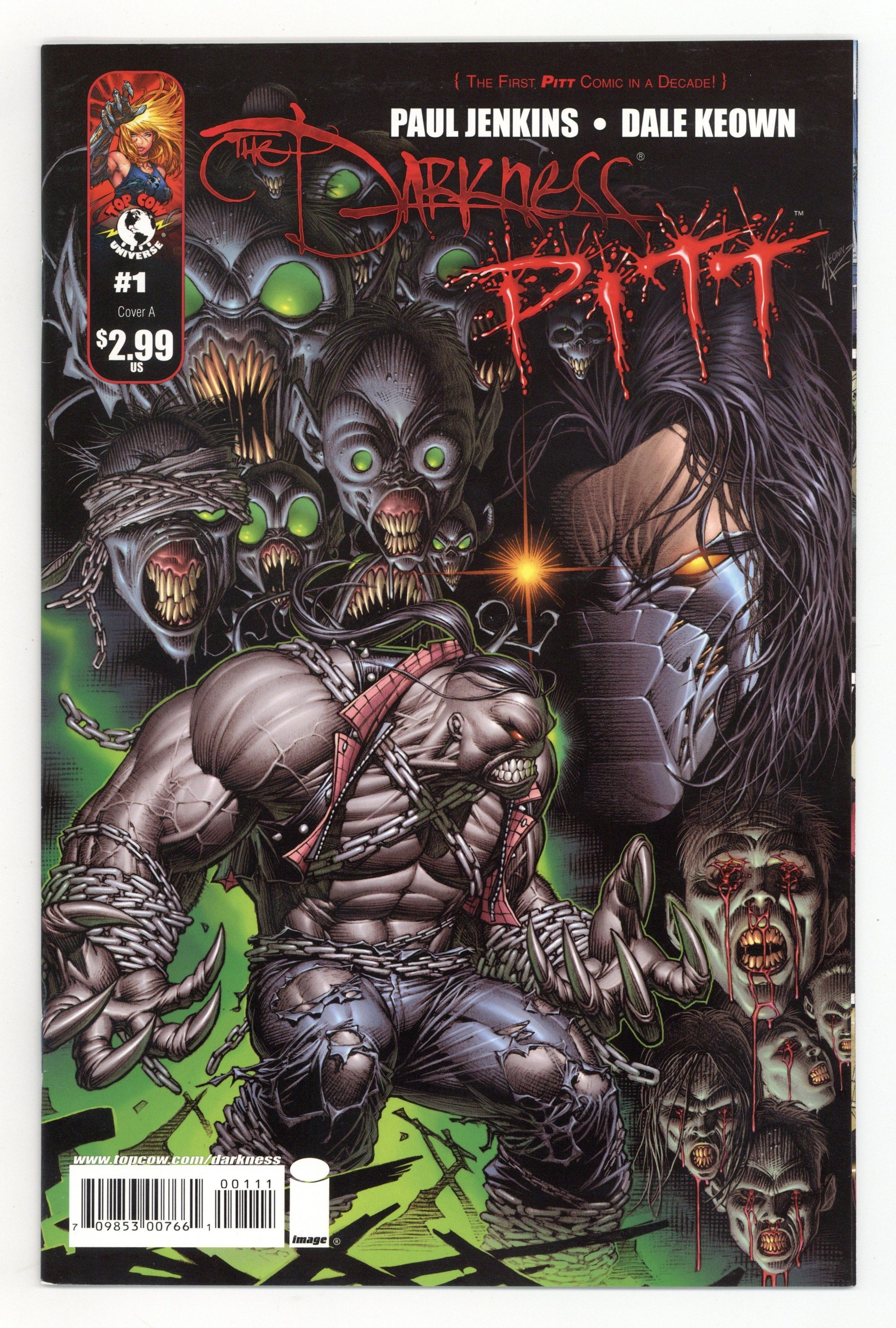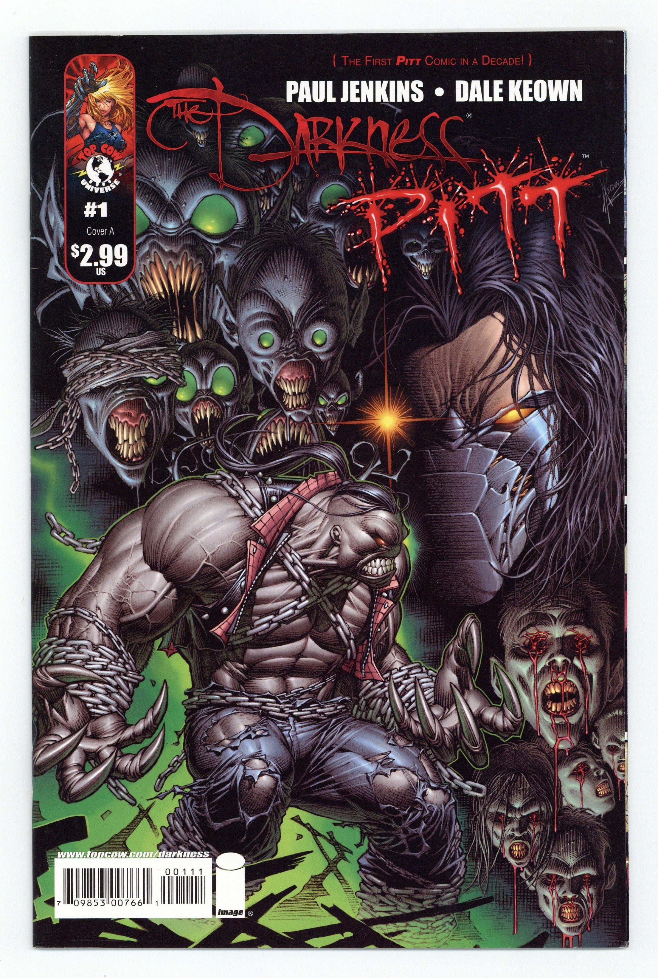 $24.00Cover by Dale Keown. Written by Paul Jenkins. Art by Dale Keown. Dale Keown's classic hero Pitt makes his return to comics! What else do you need to know? When Tim and Pitt's mission to track down those infected by an alien virus brings them to Jackie's stomping ground in New York, they are invariably drawn together. Both attract the unwanted attention of the Federal Government and mayhem ensues! The crossover reunites The Darkness writer Paul Jenkins (Captain America, Mythos) and Pitt creator Dale Keown (Hulk: The End)! 32 pages, full color. Cover price $2.99.