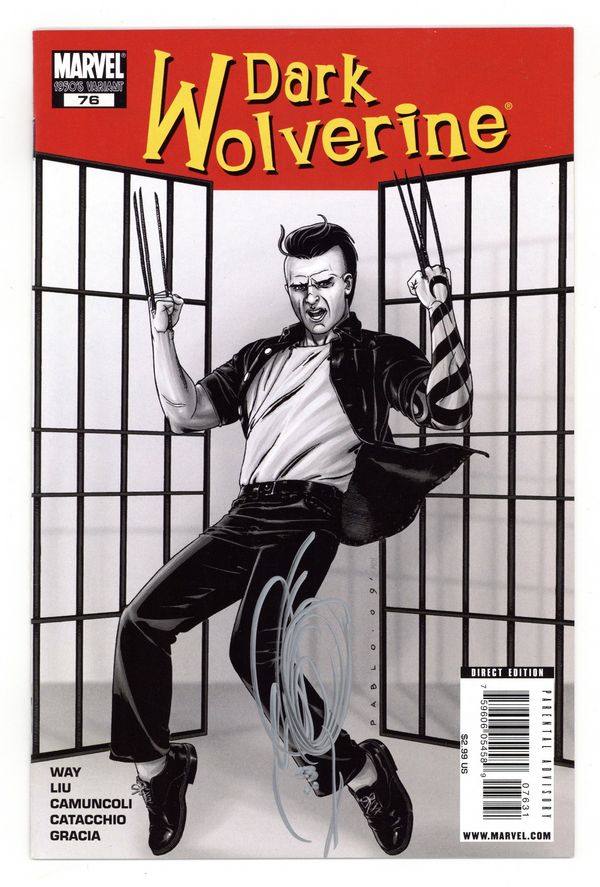 Limited (1 for 10) Edition 50s DECADE VARIANT by Pablo Raimandi. The Prince: Part 2 of 3 - Dark Reign tie-in - Written by DANIEL WAY and MARJORIE LIU. Art by GIUSEPPE CAMUNCOLI. Cover by LEINIL FRANCIS YU. From the pages of DARK AVENGERS, the journey of WOLVERINE'S son continues! Just as Daken's Machiavellian plans begin to take shape, he hits a snag. Or rather, four of them. Guest-starring THE FANTASTIC FOUR! 32 pags, full color. Cover price $2.99.