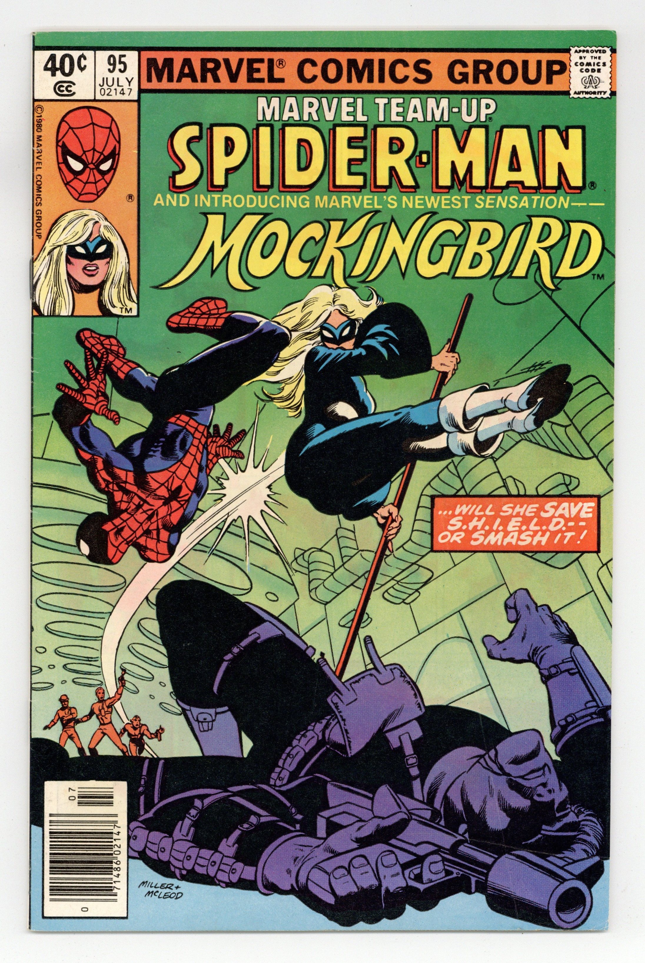 Mark Jeweler Advertisement Insert Variant. "And No Birds Sing!" Guest-starring Spider-Man and Mockingbird (1st appearance). Script by Steven Grant. Art by Jimmy James (breakdowns) and Bruce Patterson (finishes). Cover by Frank Miller and Bob McLeod. A rogue SHIELD branch director tricks the web-slinger into believing that Nick Fury's life is in jeopardy! Specifically from a former SHIELD operative...Barbara Morse! However, Mockingbird is actually trying to save Nick Fury. Will Spider-Man realize that in time? First appearance of Bobbi Morse as Mockingbird. (Notes: After a cameo appearance in Contest of Champions 1, Mockingbird appears next in the first Hawkeye Limited Series published in 1983. The letters page contains a brief essay from Mark Gruenwald about the creation of Mockingbird.) 32 pages Cover price $0.40.