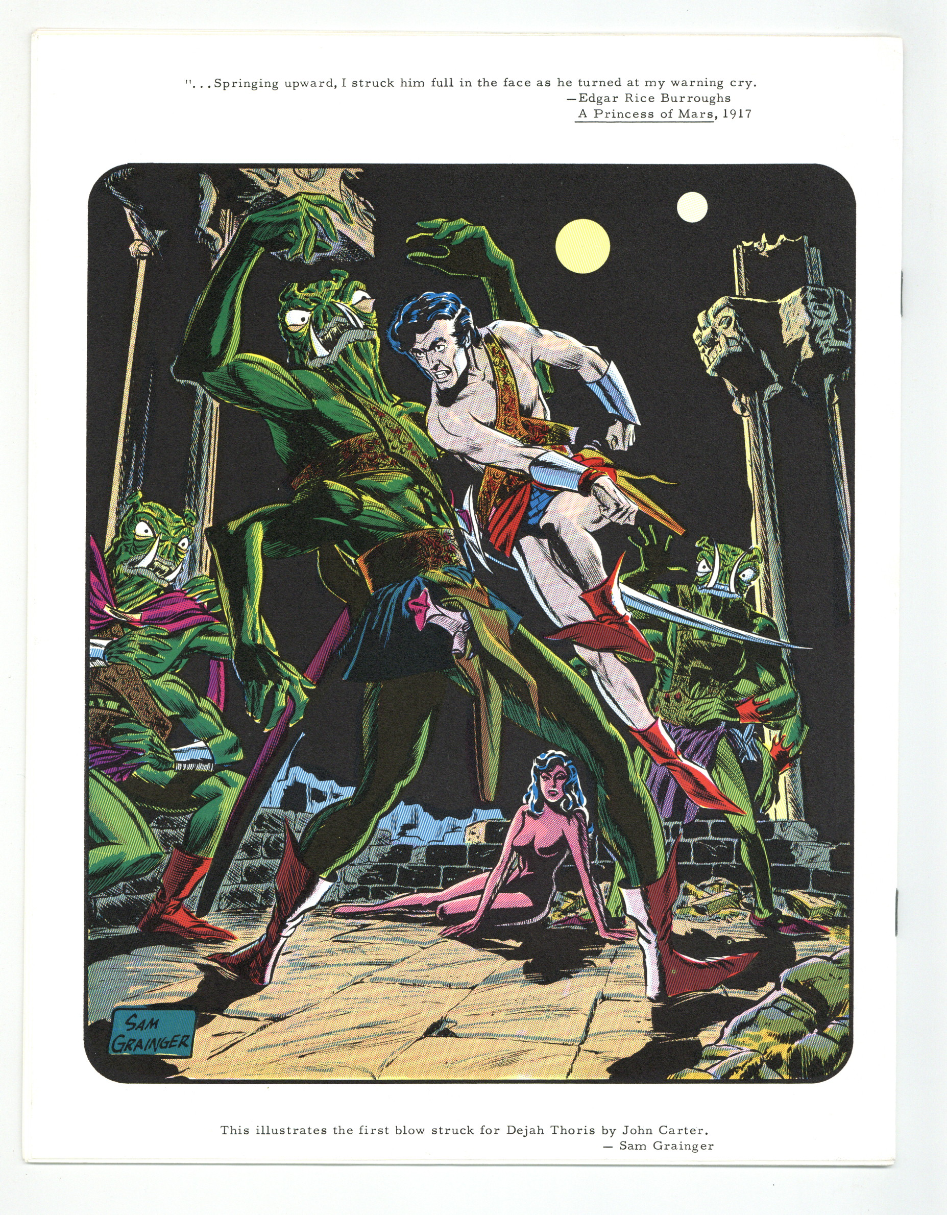 Published Aug 1968 by Camille Cazedessus, Jr.$7.80ERB-dom was one of the best fanzines focusing on Tarzan creator Edgar Rice Burroughs. Issue #24 includes the following: Tarzan on TV: The 1966-67 Series, The NBC TV Shows: An Index, art by Hulbert Burroughs, John Carter—Past and Present, ERB Calendars Sept, Oct, and Nov 1968, Fantasy Collector ad, The Jungle Vine poem by L. Sprague de Camp with art by Jeff Jones, Tarzan and the Jungle Boy, British Tarzan Comic Novels, and an article on the magazine Transition. Back cover art by Sam Grainger. 20 pgs. Aug, 1968. Edited and published by Camille Cazedessus. Cover price $0.50.