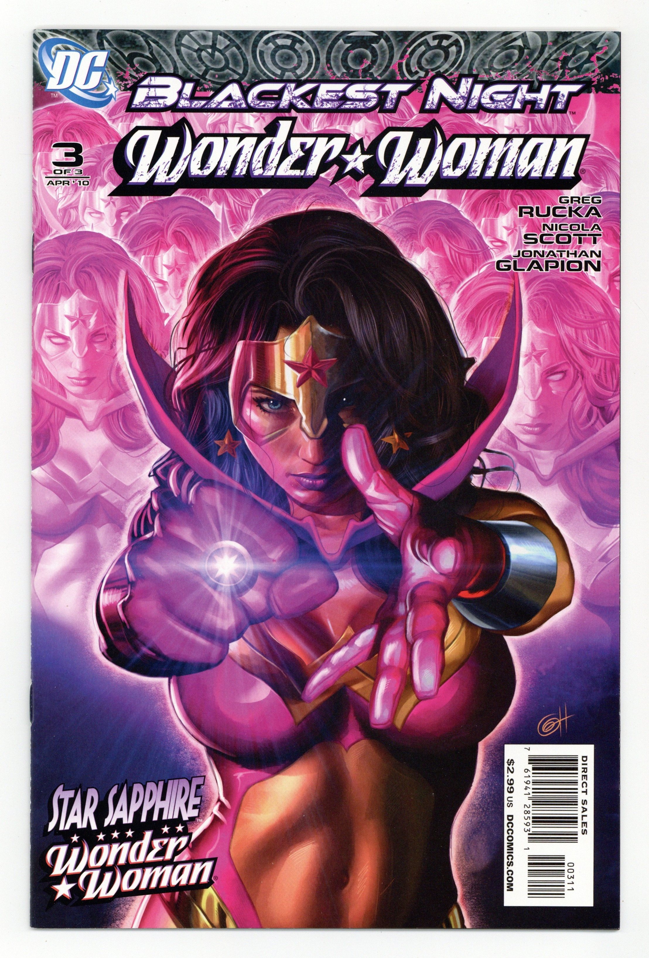 Tags: Blackest Night (part 6.04)$16.00Cover by Greg Horn. Written by Greg Rucka. Art by Nicola Scott. Following closely to the events of BLACKEST NIGHT, this miniseries event concludes as the Amazonian Princess comes to terms with who she is and what her role is in the world. But will her acceptance make her more appetizing to the Black Lantern hordes - or could that emotion be their undoing? Cover price $2.99.