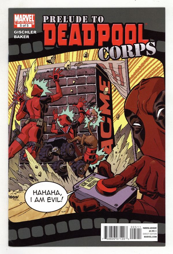 Tags: X-Men$15.00Written by VICTOR GISCHLER. Art by KYLE BAKER. Cover by DAVE JOHNSON. Witness the birth of the most important super hero team ever in a universe-spanning event that will rock the month of March! Wade Wilson has been tapped to save the Universe, and to do that he's going to need help. Enter: The sexy-but-insecure Lady Deadpool! The devious-but-lovable Headpool (a.k.a. the Zombie Deadpool Head)! The bratty-but-brilliant Kidpool! And the irascible mutt known as Dogpool! Individually, they're, well, kind of messed up, but together, they're the unstoppable force know as DPC. 32 pages, full color. Cover price $2.99.