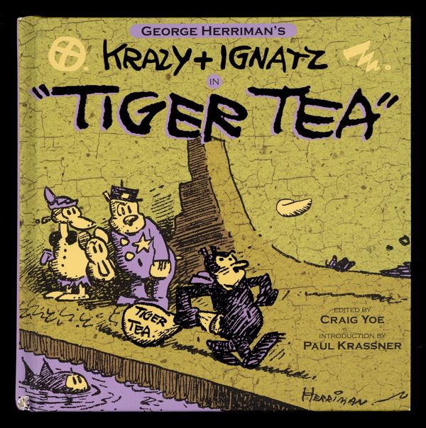 1st printing. By George Herriman. Krazy Kat's most surreal adventures were the famed "Tiger Tea" sequence where Krazy Kat imbibed a psychedelia-inducing substance. This is George Herriman at his best in the only full-length Krazy Kat adventure story of his career presented in the same era as Terry and the Pirates and Captain Easy. Krazy & Ignatz in Tiger Tea showcases a rare photo of Herriman sporting a Mexican sombrero and smoking a funny looking cigarette, a perfect addition to this fun, classic trip down memory lane. Hardcover, 8-in. x 8-in., 122 pages, B&W. Cover price $12.95.