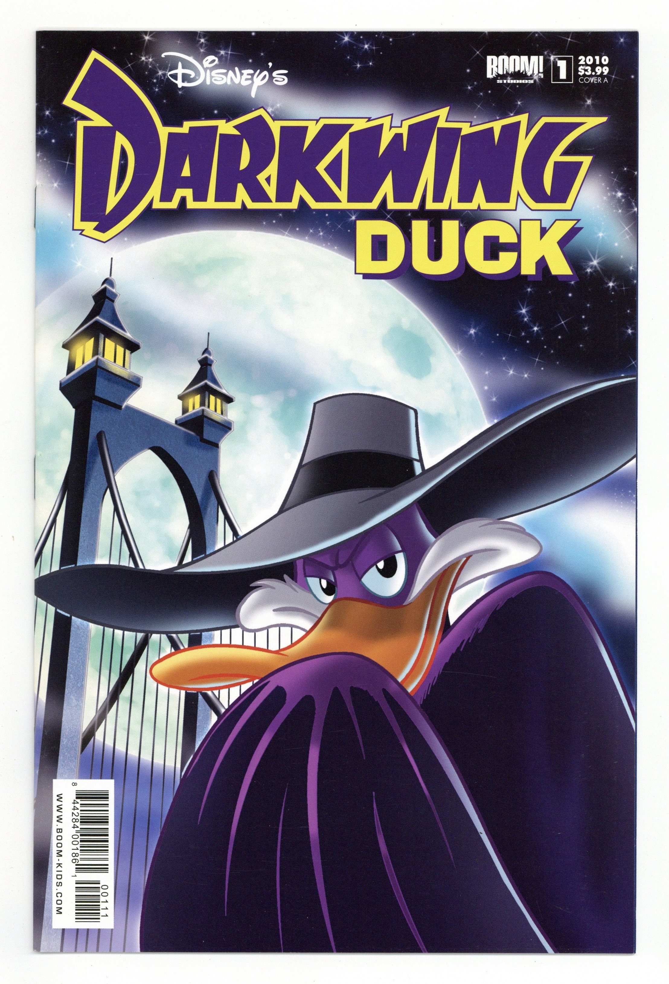 Tags: Disney Ducks & MicePublished Jun 2010 by Boom Studios.$35.00Cover by Magic Eye Studios. Written by Ian Brill. Art by James Silvani. You demanded it. And BOOM! Studios delivers. Don't miss the long-awaited, much requested return of your favorite, Darkwing Duck. Once St. Canard's greatest protector, Darkwing Duck was known the world over as 'The Terror That Flaps In The Night.' Now, mysteriously, DW has not been seen or heard from in well over a year - and St. Canard finds that evil is once again on the rise. But when a nefarious plan threatens everyone, Darkwing Duck knows it's time for the Duck Knight to return! 'Let's Get Dangerous!' with Disney and BOOM! Studios as one of Disney's most beloved characters makes a comeback in his own not-to-be-missed original mini-series! Note: Available in the United States and Canada only. Cover price $3.99.