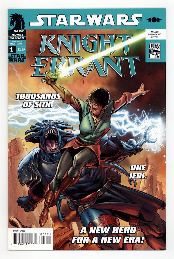 Tags: Star WarsPublished Oct 2010 by Dark Horse.$16.00Limited 1 for 5 Variant Cover by Dave Ross. John Jackson Miller (W), Federico Dallocchio (A), Michael Atiyeh (C), Mark Kenna (I) More than one thousand years before Luke Skywalker, a dark age grips the galaxy as an ineffectual Republic abandons entire systems to Sith control. A newly knighted Jedi on her first mission, eighteen-year-old Kerra Holt has joined a band of Jedi volunteers traveling deep behind enemy lines, with no support from the Republic and little chance of survival. She thinks she is prepared for anything. She's wrong. o A new series in a new era, introducing a new female hero to Star Wars! o John Jackson Miller is also writing a Knight Errant novel for Del Rey starring Kerra Holt in an original adventure! See her here first! On sale Oct 13 FC, 40 pages $2.99 Miniseries Cover price $2.99.