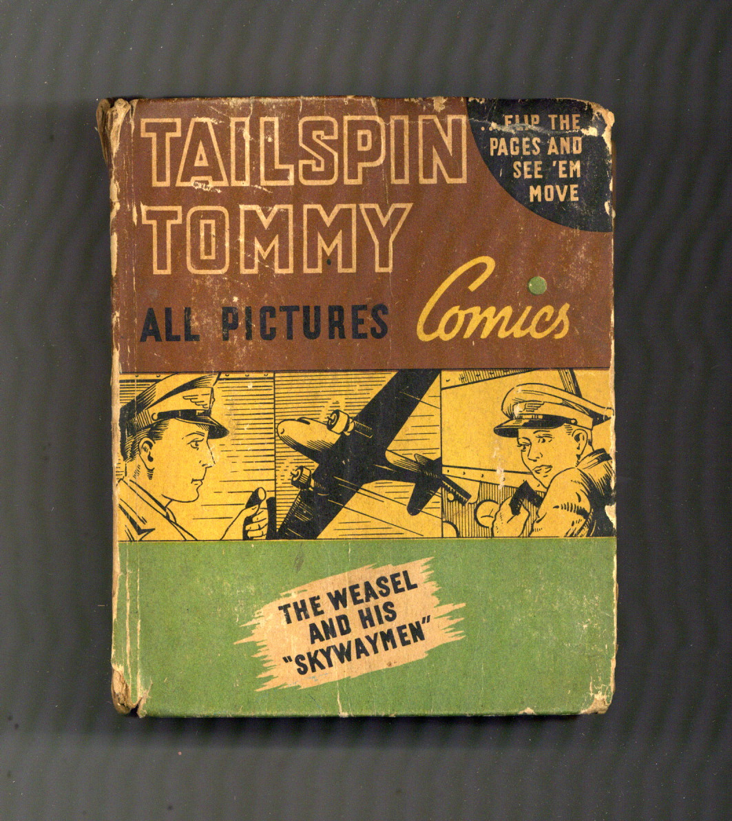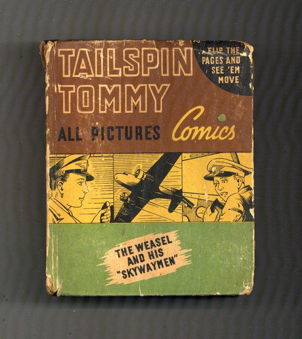 Tailspin Tommy the Weasel and His "Skywaymen" (1941 Whitman BLB) #1410. All Pictures Comics, flip pictures. 3.5-in. x 4.5-in. Hardcover, B&W.