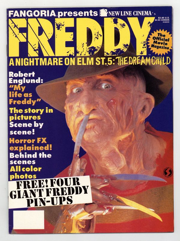 $24.00Official movie magazine for A Nightmare on Elm Street 5: The Dream Child, with interviews, articles, and fold-out posters. 8-in. x 10-7/8 in.; full color; 64 pages on slick paper. Cover price $3.95.
